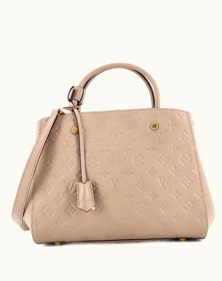 Louis Vuitton Montaigne Handbag Monogram Empreinte Leather MM in Neutral Gold | GLINT