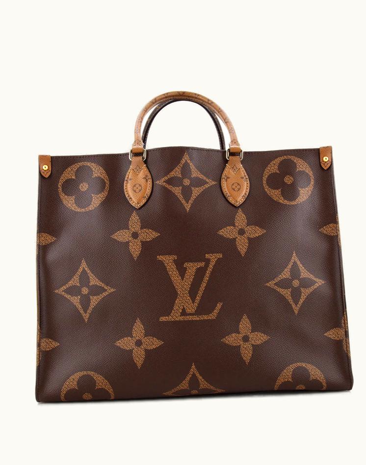 Louis Vuitton Onthego Tote Reverse Monogram Giant GM Coated Canvas Brown Gold | GLINT