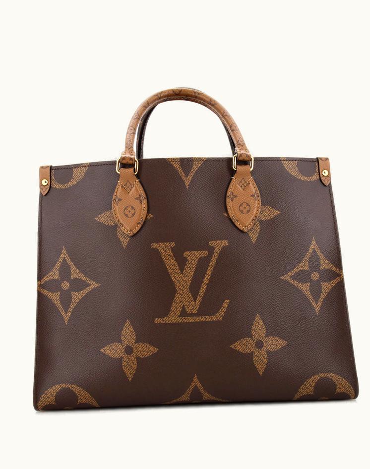 Louis Vuitton Onthego Tote Reverse Monogram Giant MM Coated Canvas Brown | GLINT