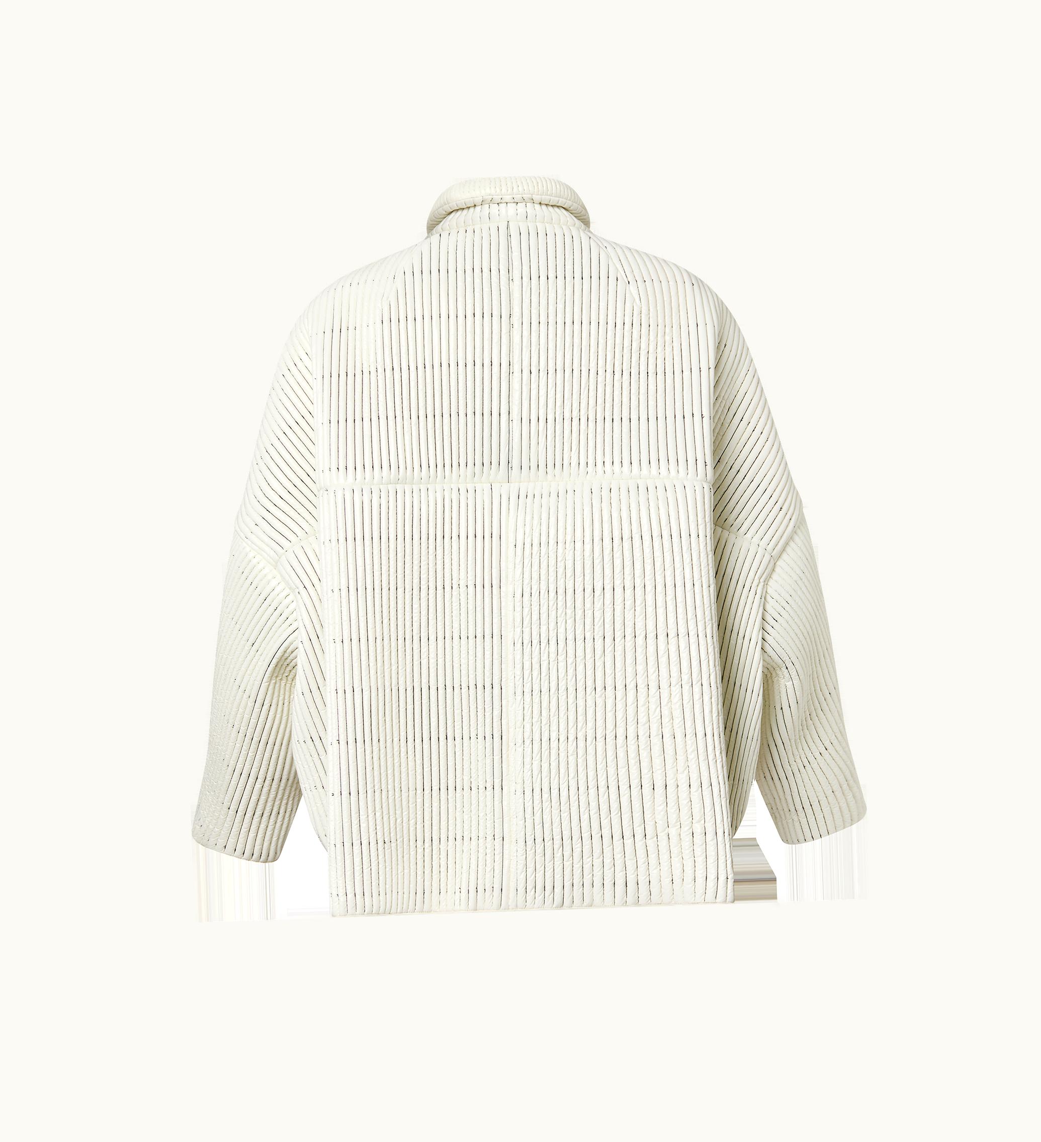 Louis Vuitton Pinstripe Quilted Egg Coat Beige | GLINT