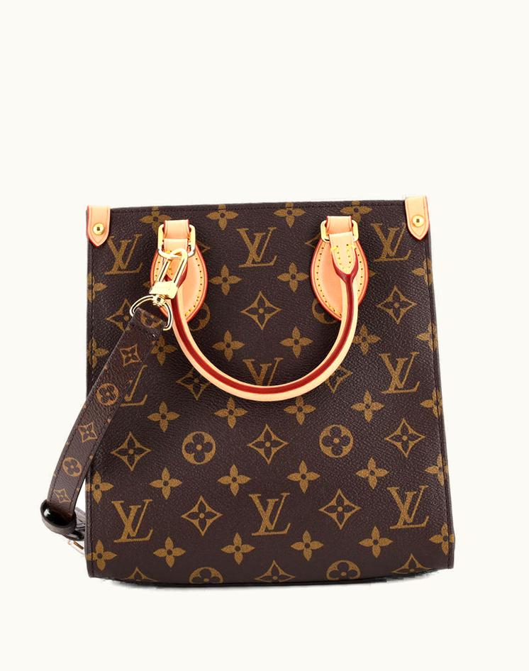 Louis Vuitton Sac Plat NM Bag Monogram Canvas BB Brown Red Gold | GLINT
