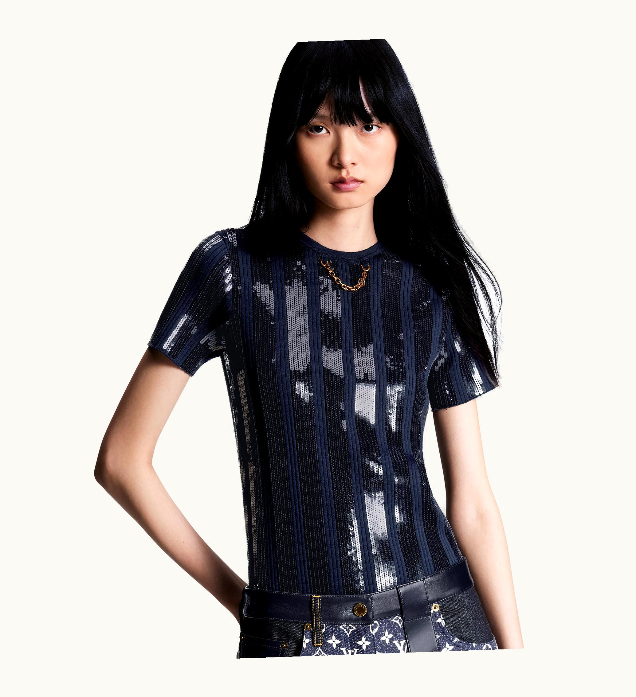 Louis Vuitton Sequin Stripes T-Shirt Blue | GLINT