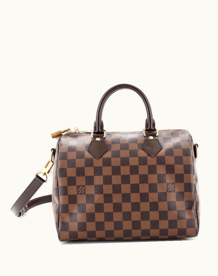 Louis Vuitton Speedy Bandouliere Bag Damier 25 Canvas Coated Brown Gold | GLINT