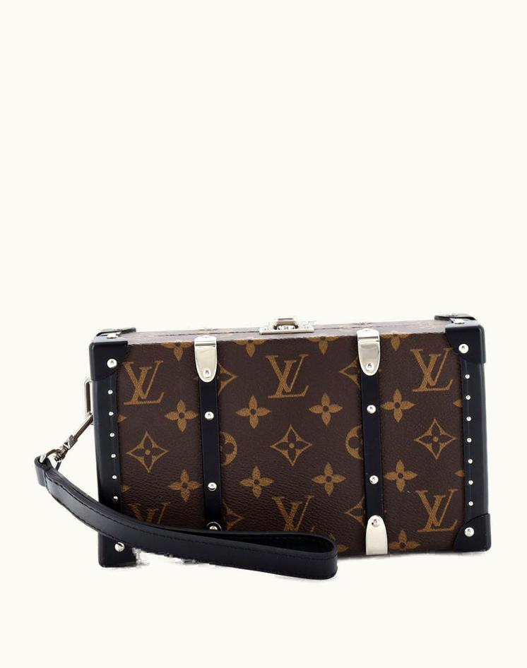 Louis Vuitton Trunk Clutch Macassar Monogram Canvas Wallet in Black/Brown Silver | GLINT