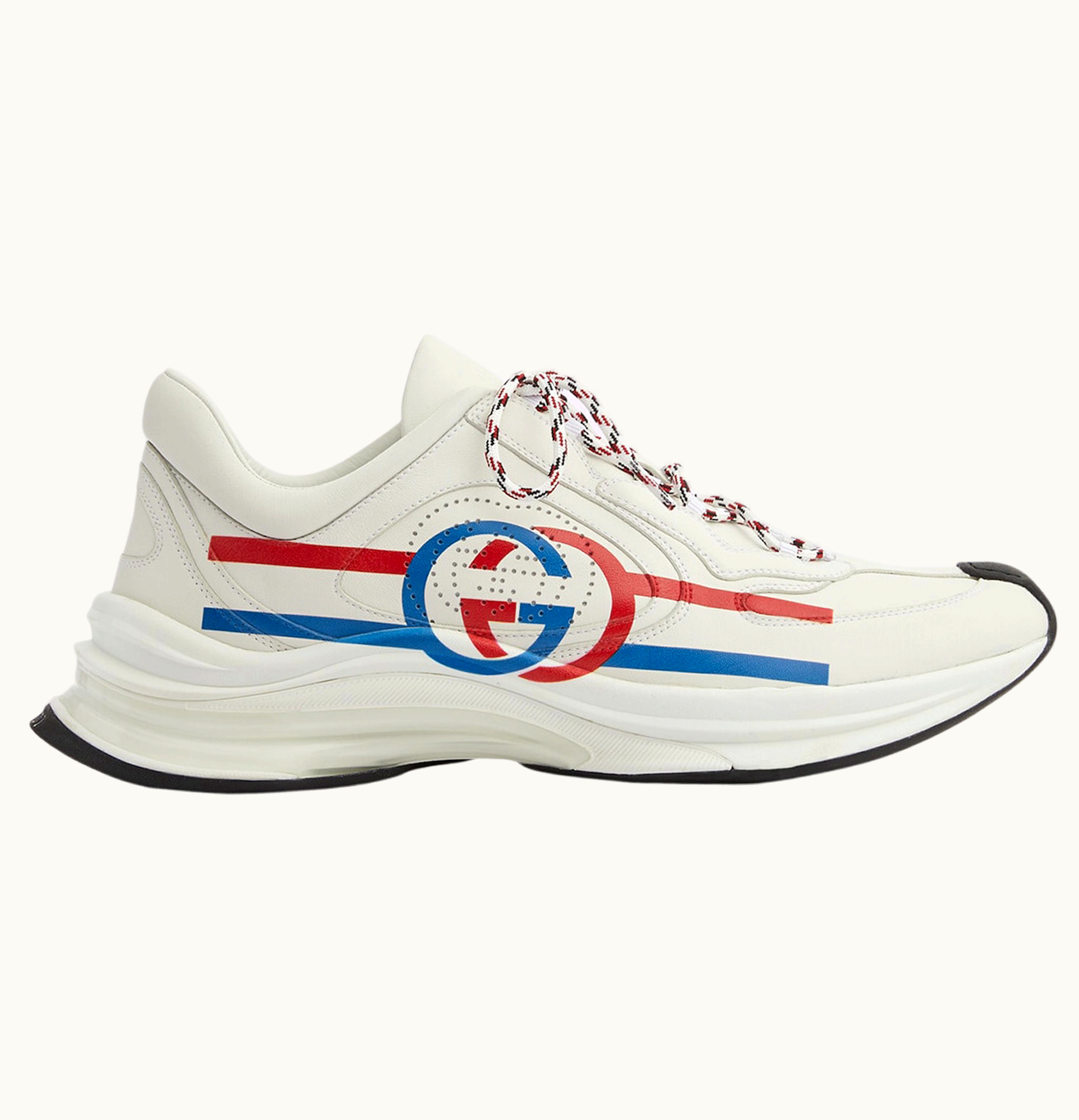 Gucci Run White Blue Red Interlocking G White Stripe Detail | GLINT