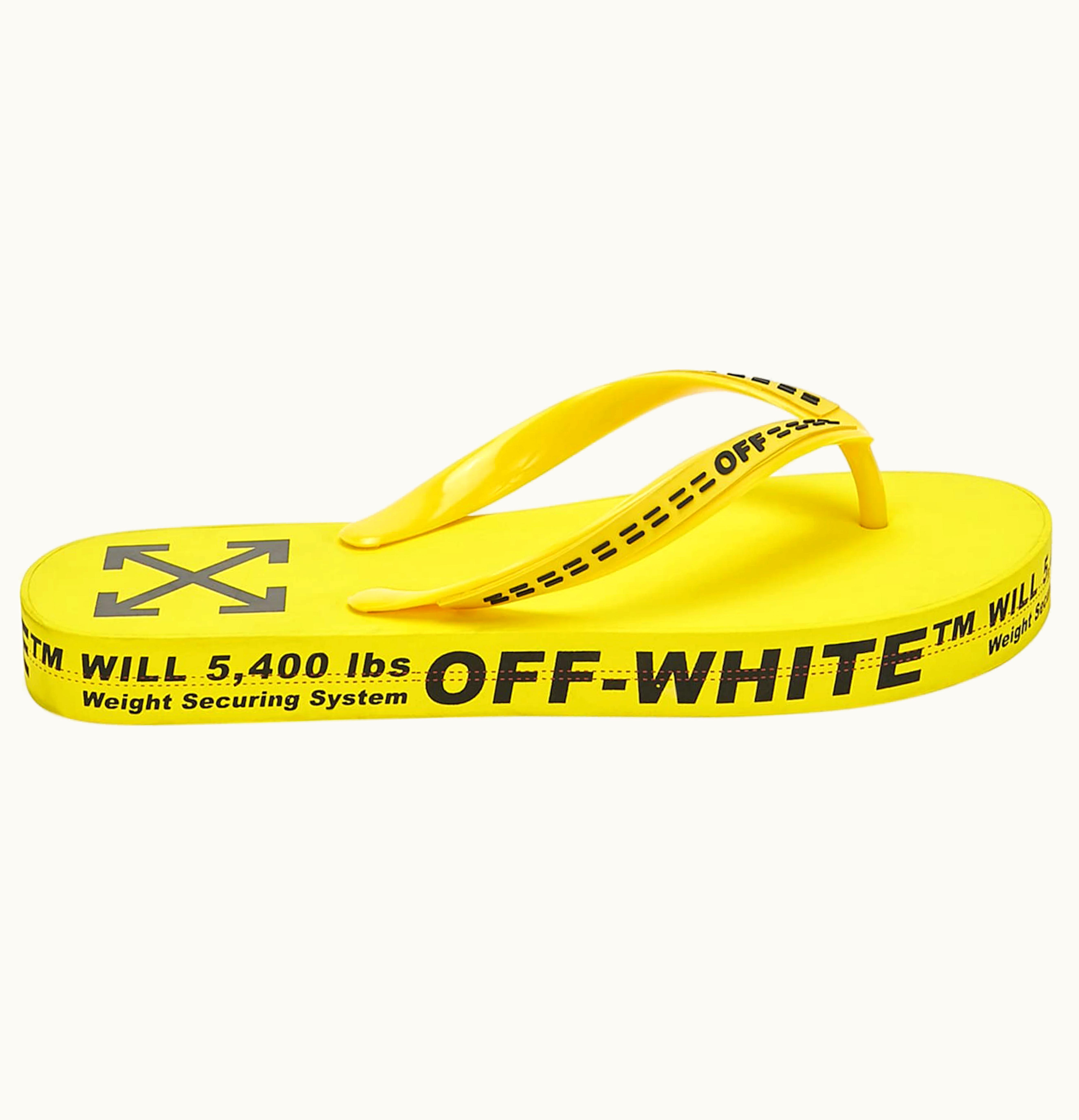 Off White Logo Typographic Flip Flop Yellow SS20 | GLINT