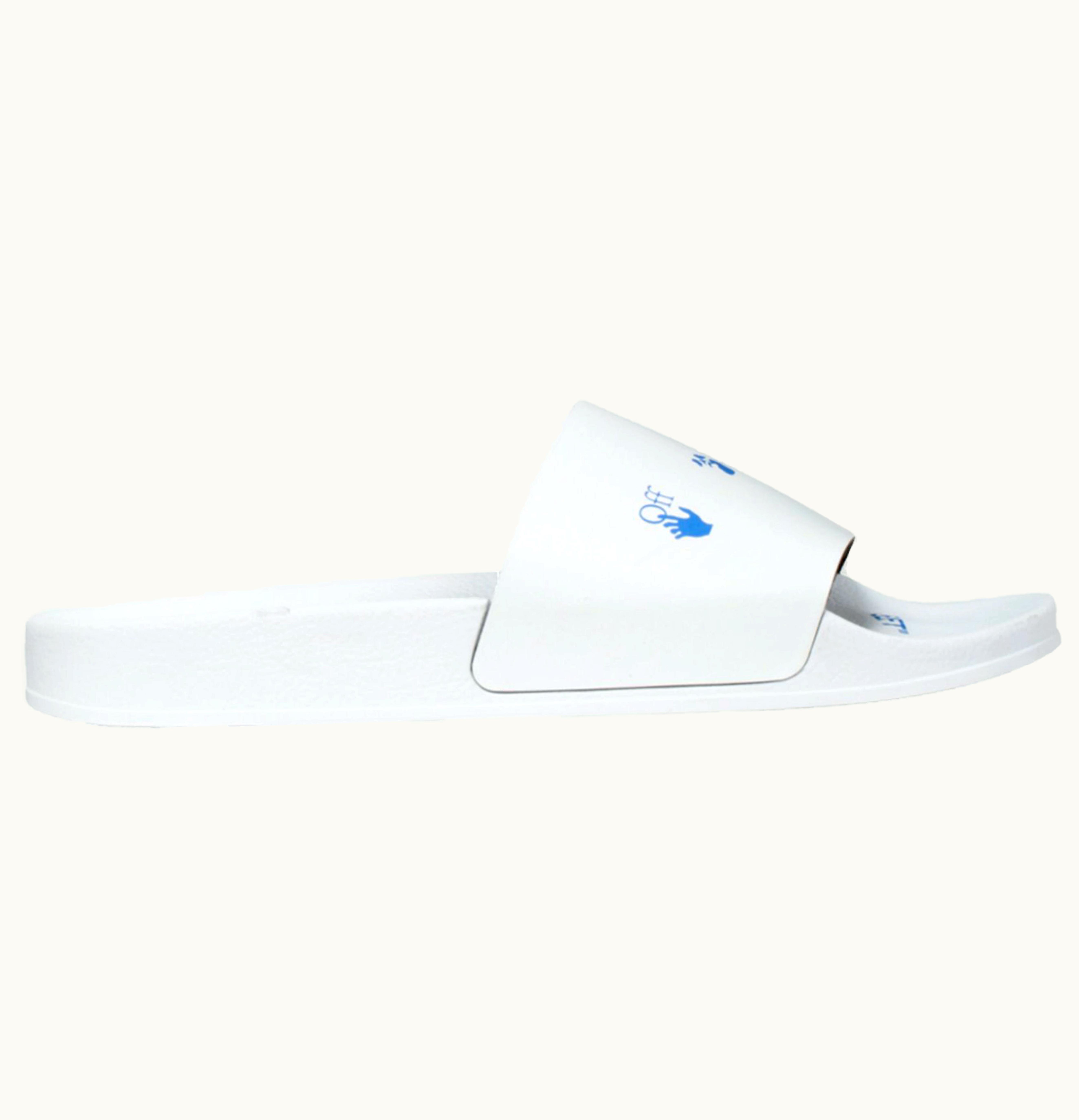 Off White Logo Sliders White Blue AW20 | GLINT