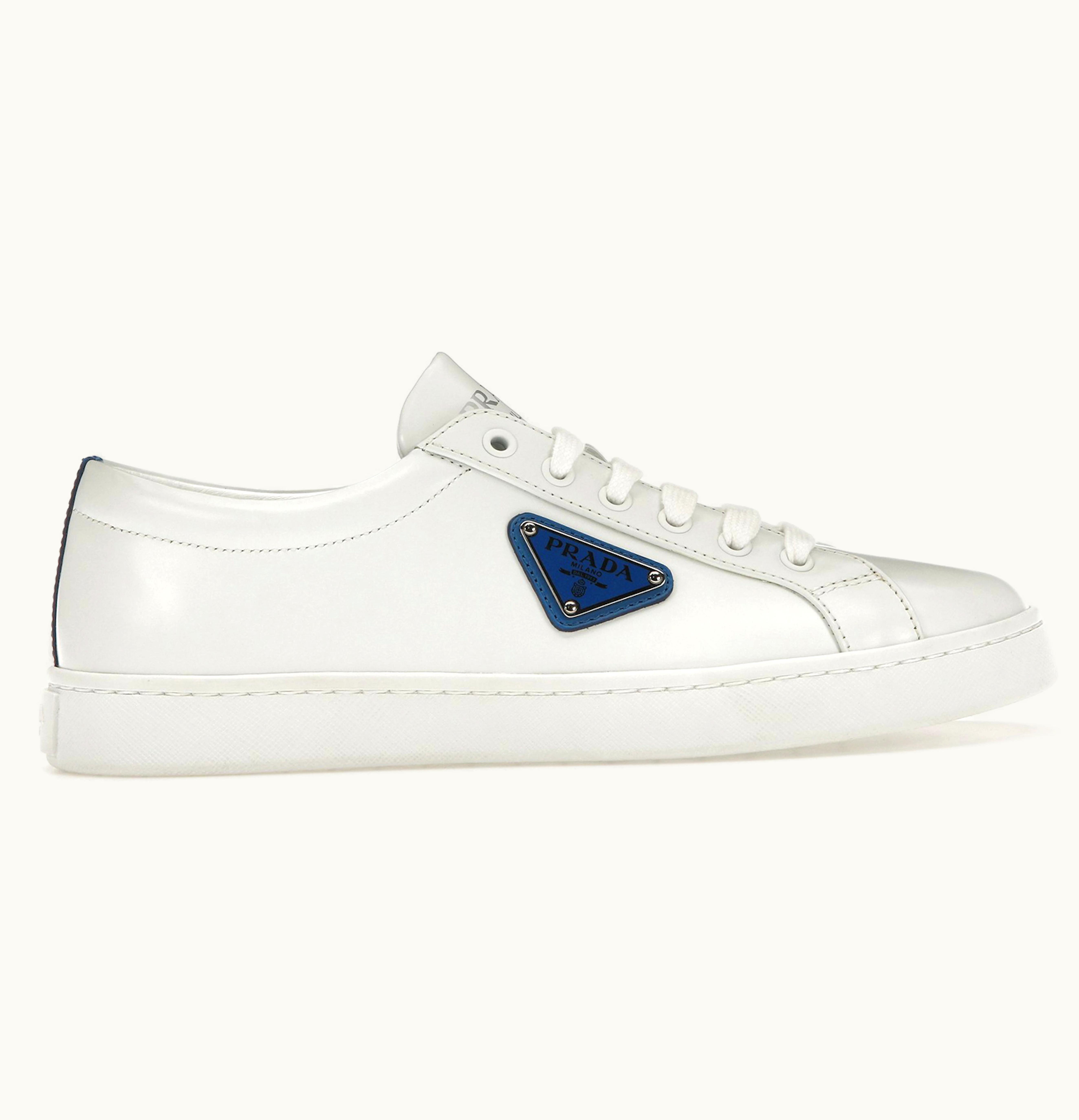 Prada Court Sneaker White Blue Leather Womens | GLINT