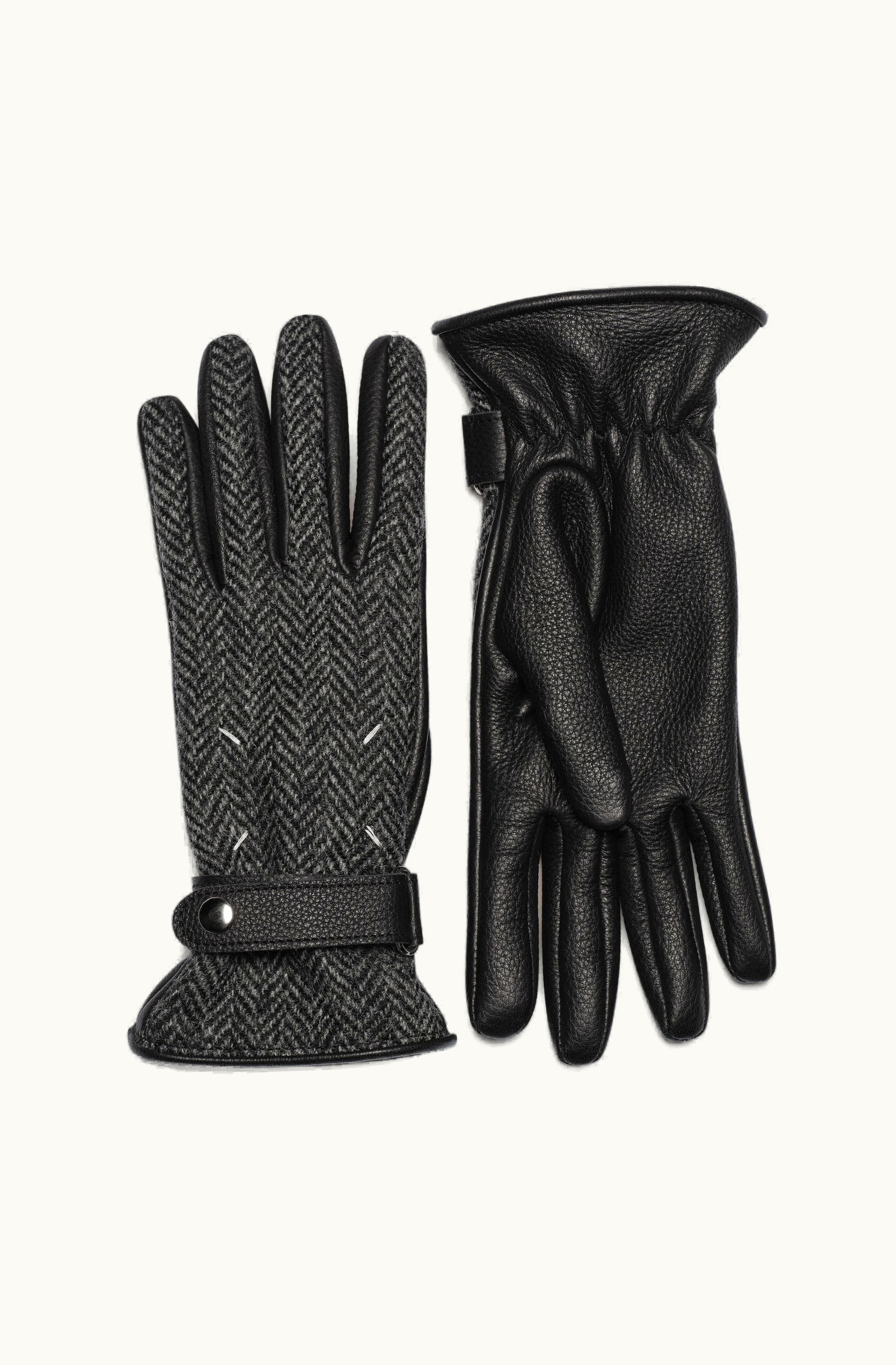Maison Margiela Herringbone Leather Gloves Black | GLINT