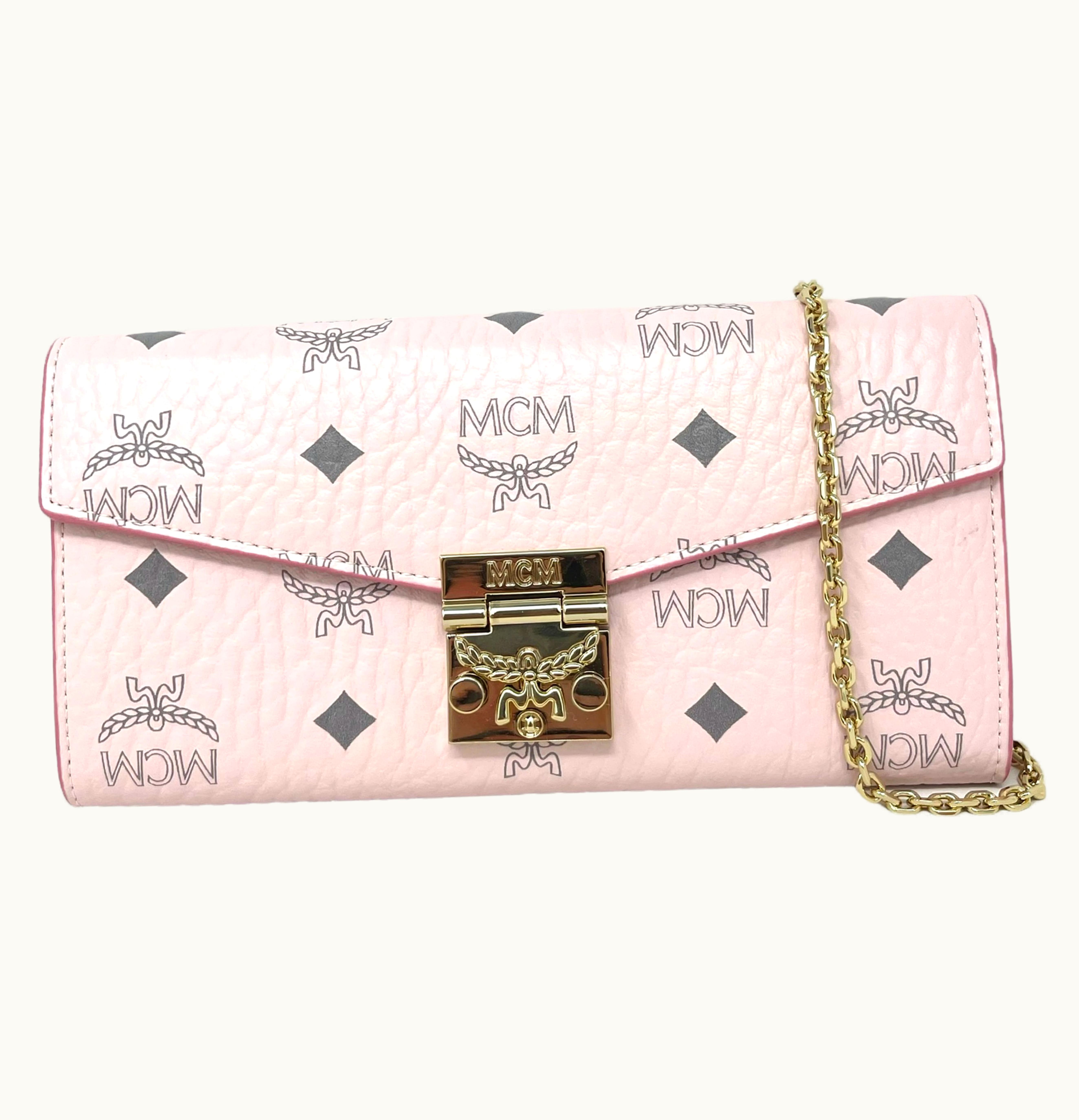 MCM Tracy Monogram Logo Wallet On Chain Crossbody Bag Pink | GLINT