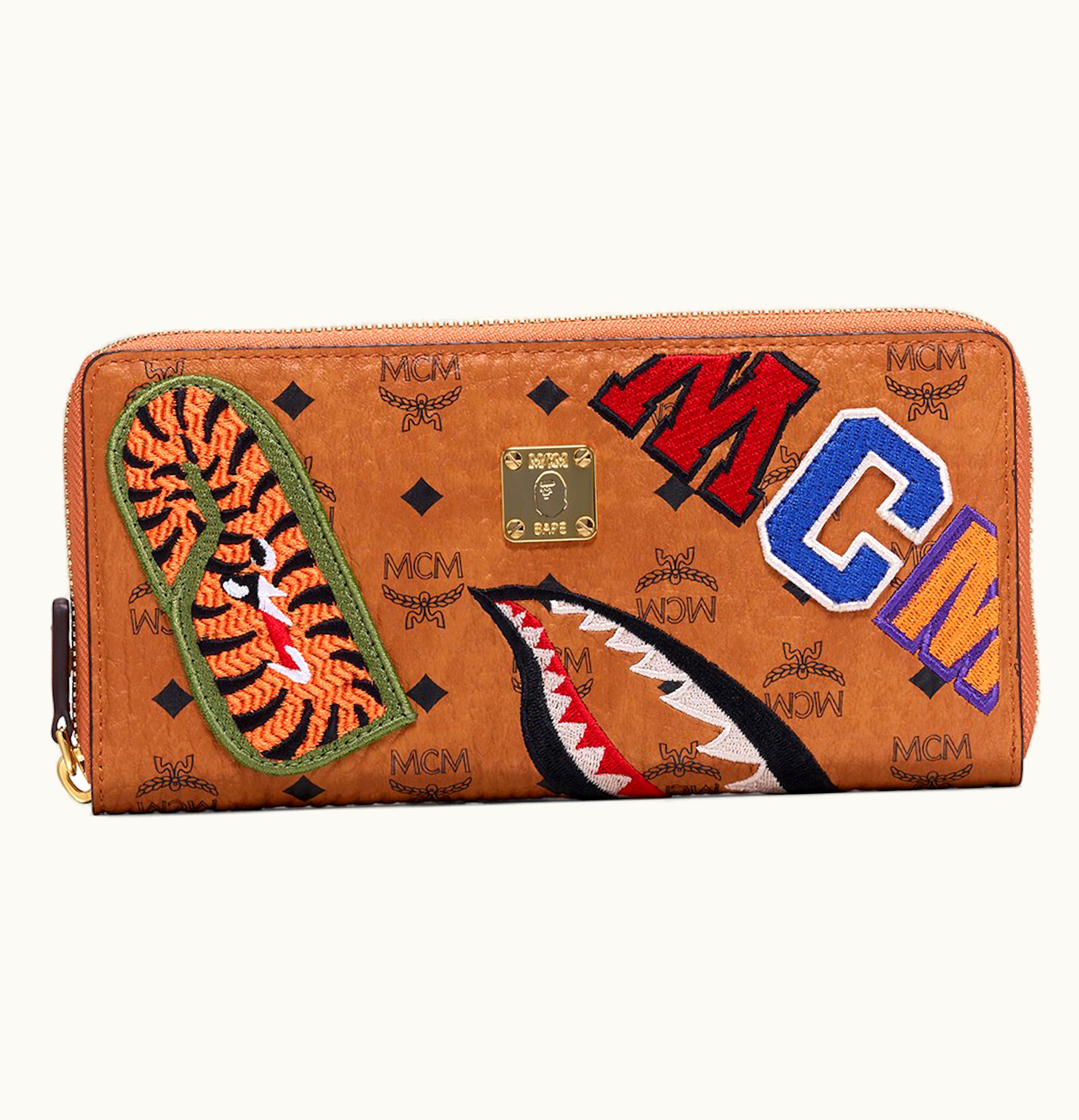 MCM x BAPE Zip Around Wallet Visetos Large Cognac | GLINT