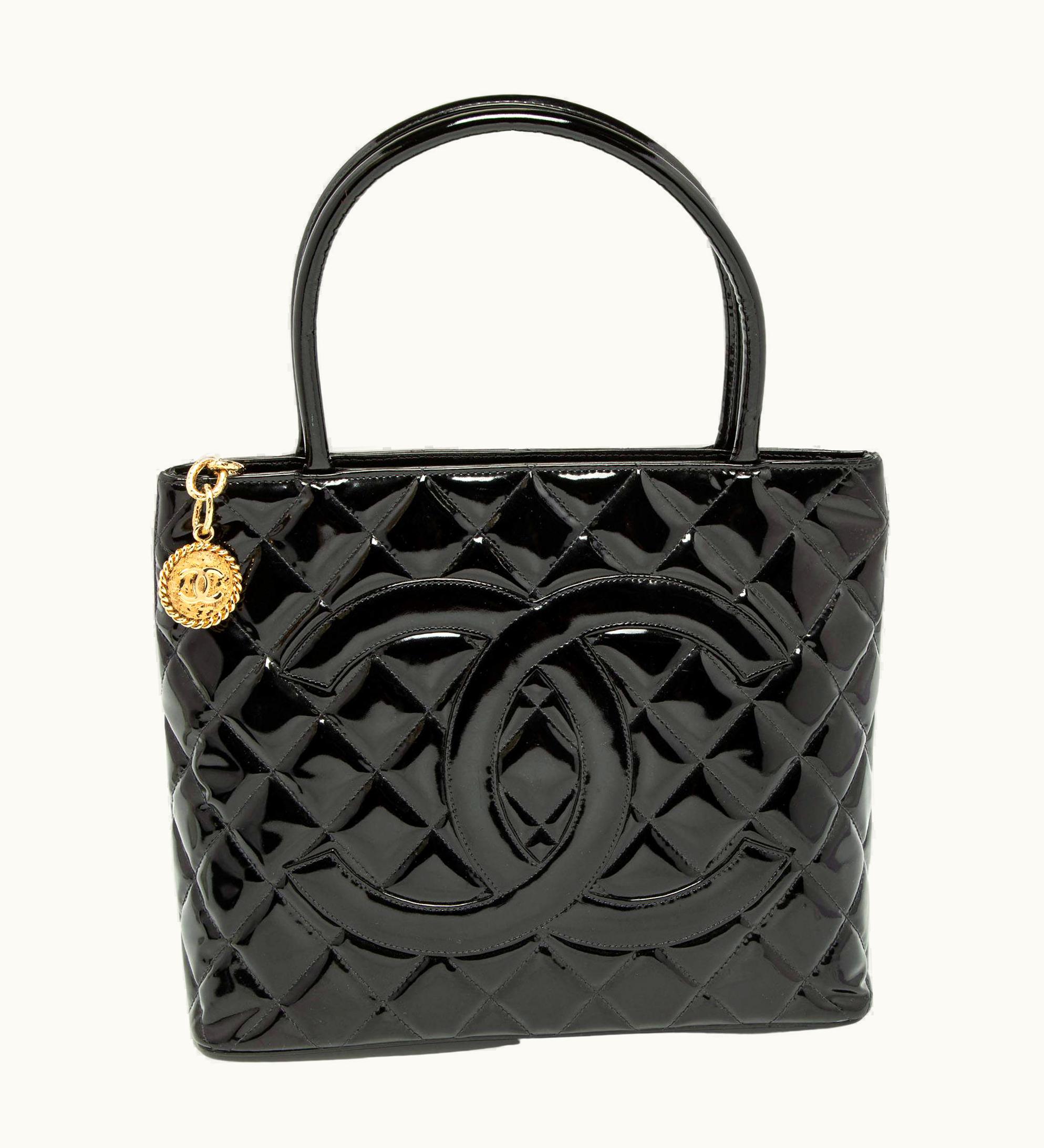 Chanel Black Patent Leather Medallion Tote | GLINT