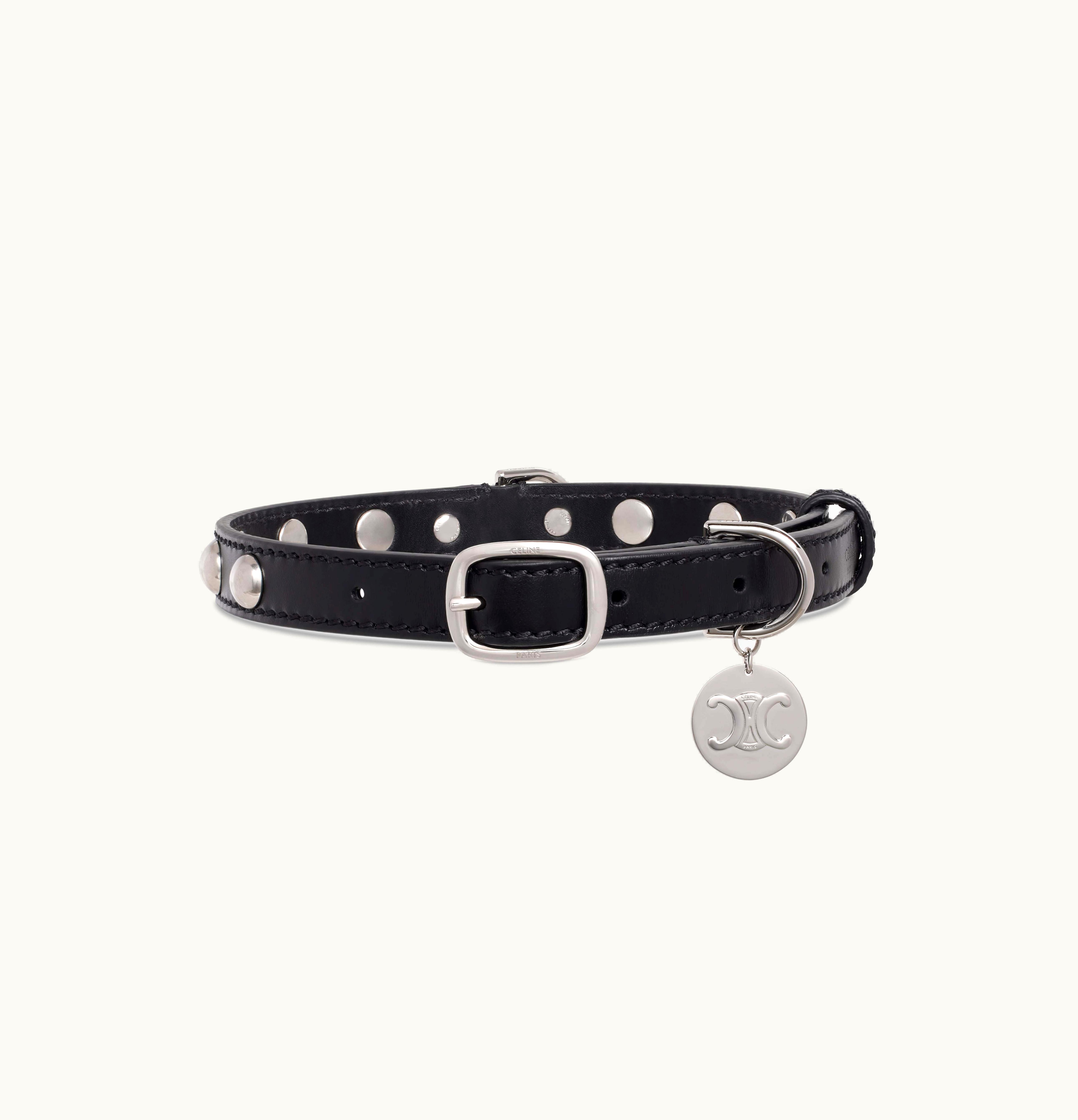 Celine Medium Thin Dog Collar In Smooth Calfskin With Studs Black | GLINT