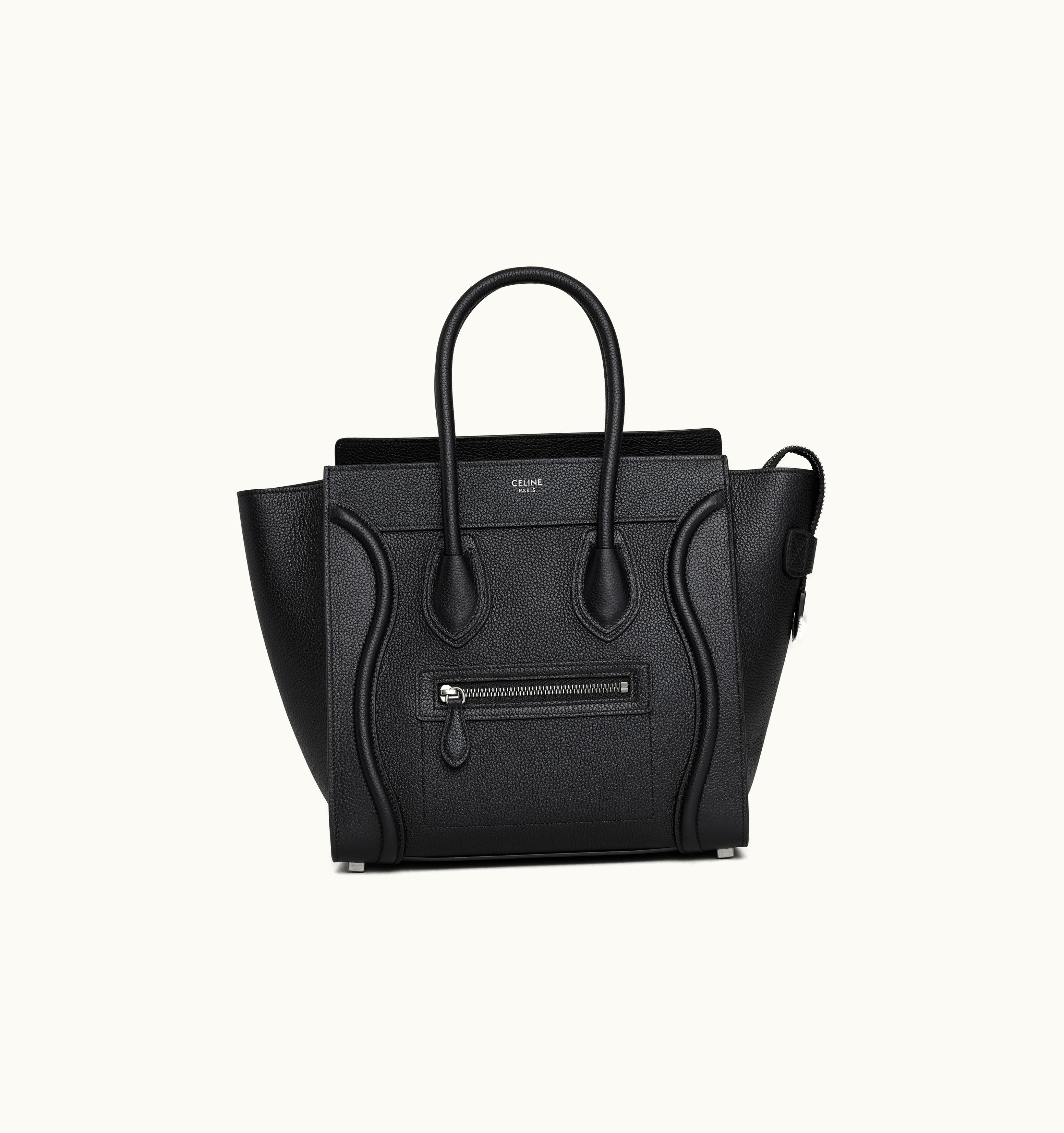 Celine Micro Luggage Handbag In Drummed Calfskin Black | GLINT