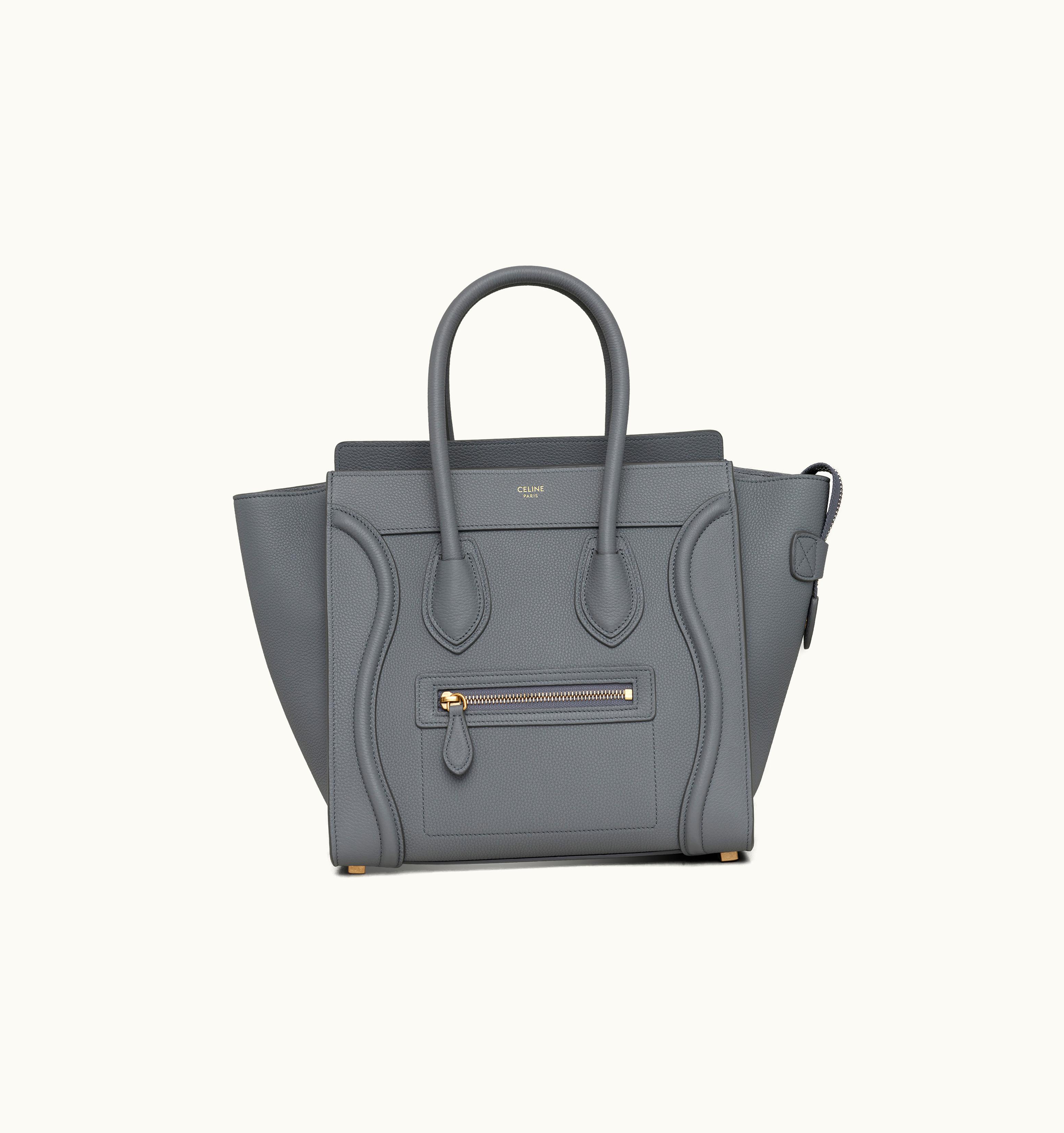 Celine Micro Luggage Handbag In Baby Drummed Calfskin Kohl | GLINT