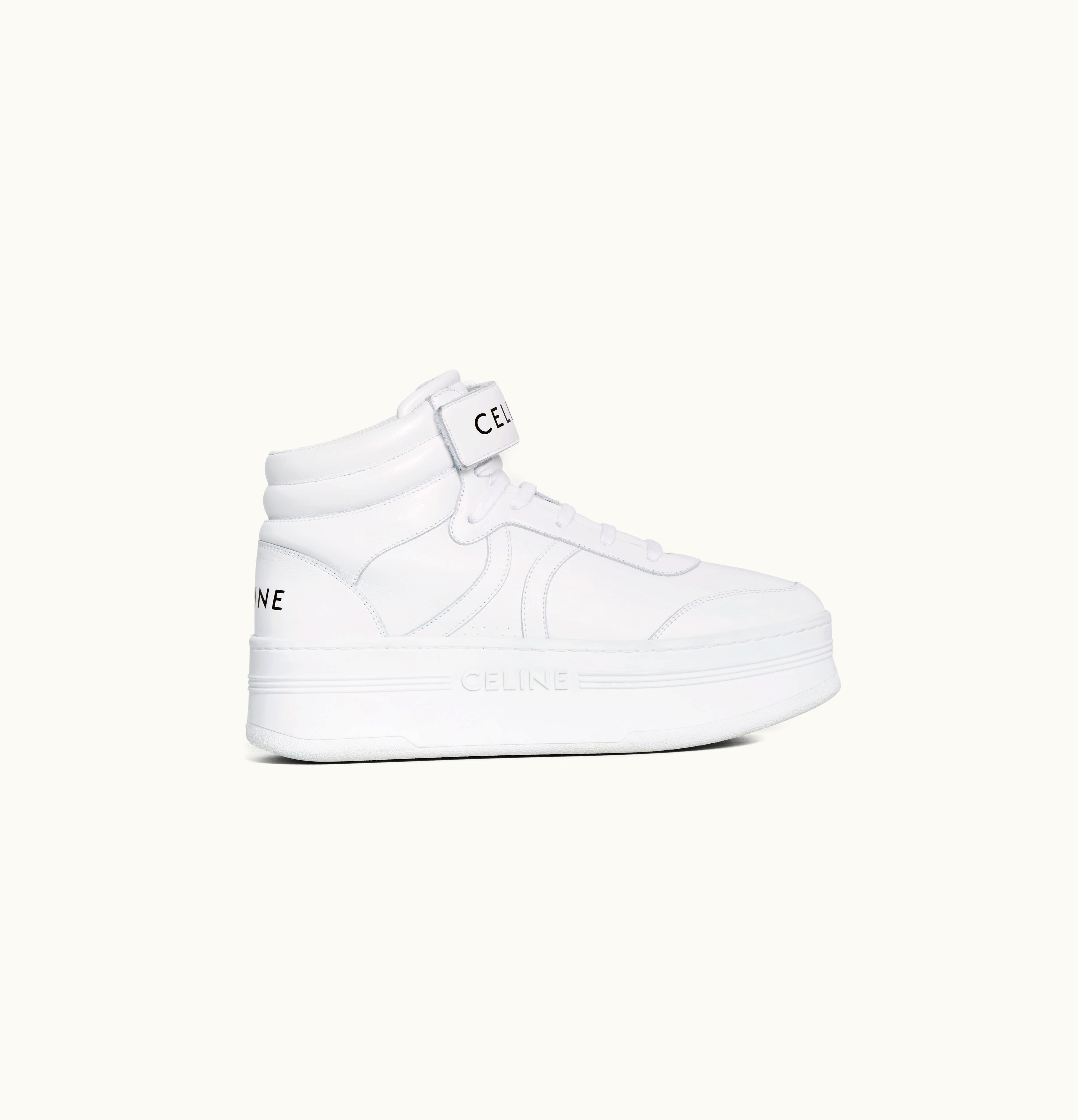 Celine Mid Block Sneakers With Velcro And Wedge In Calfskin Optic White | GLINT