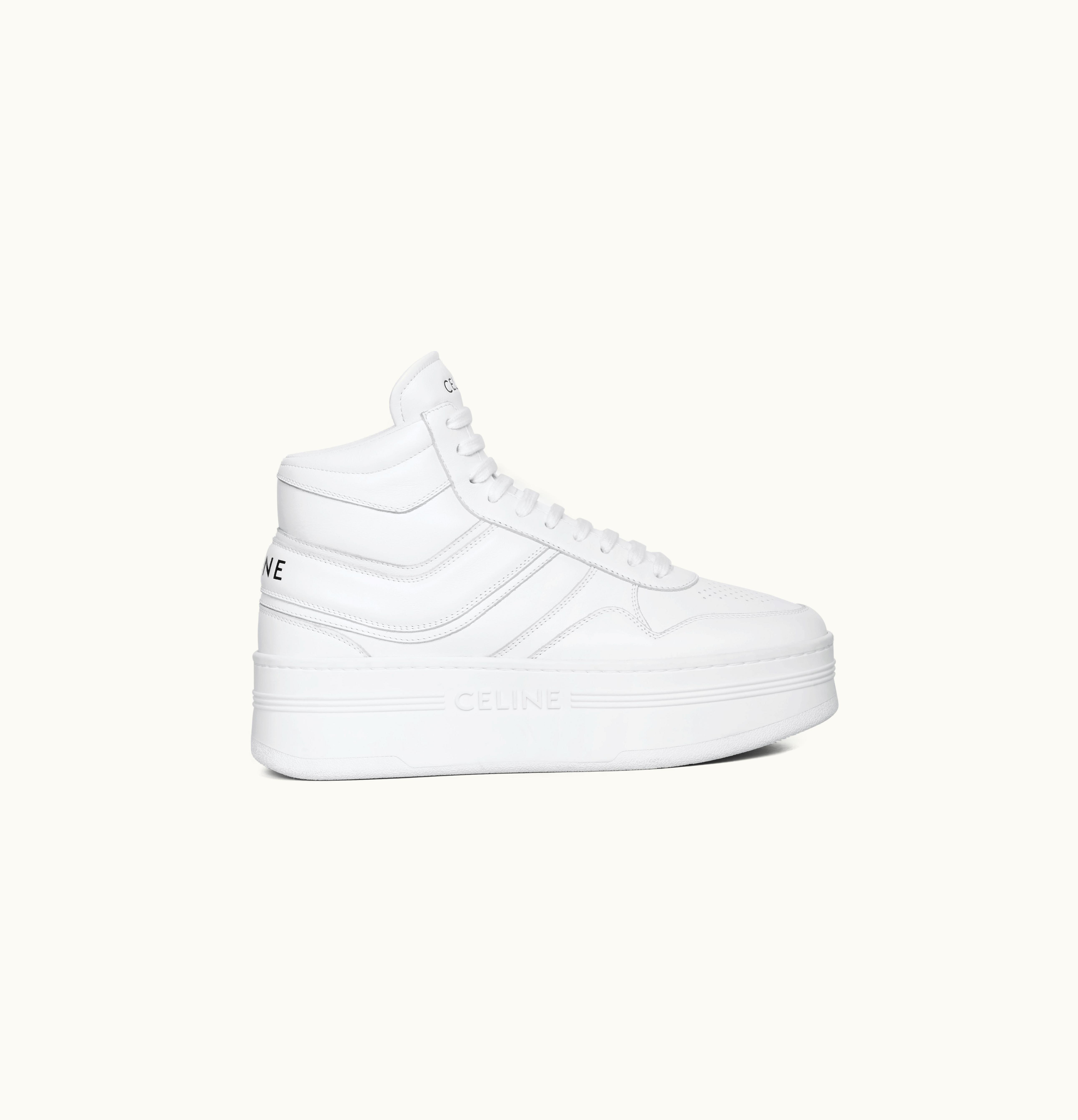 Celine Mid Block Sneakers With Wedge In Calfskin Optic White | GLINT
