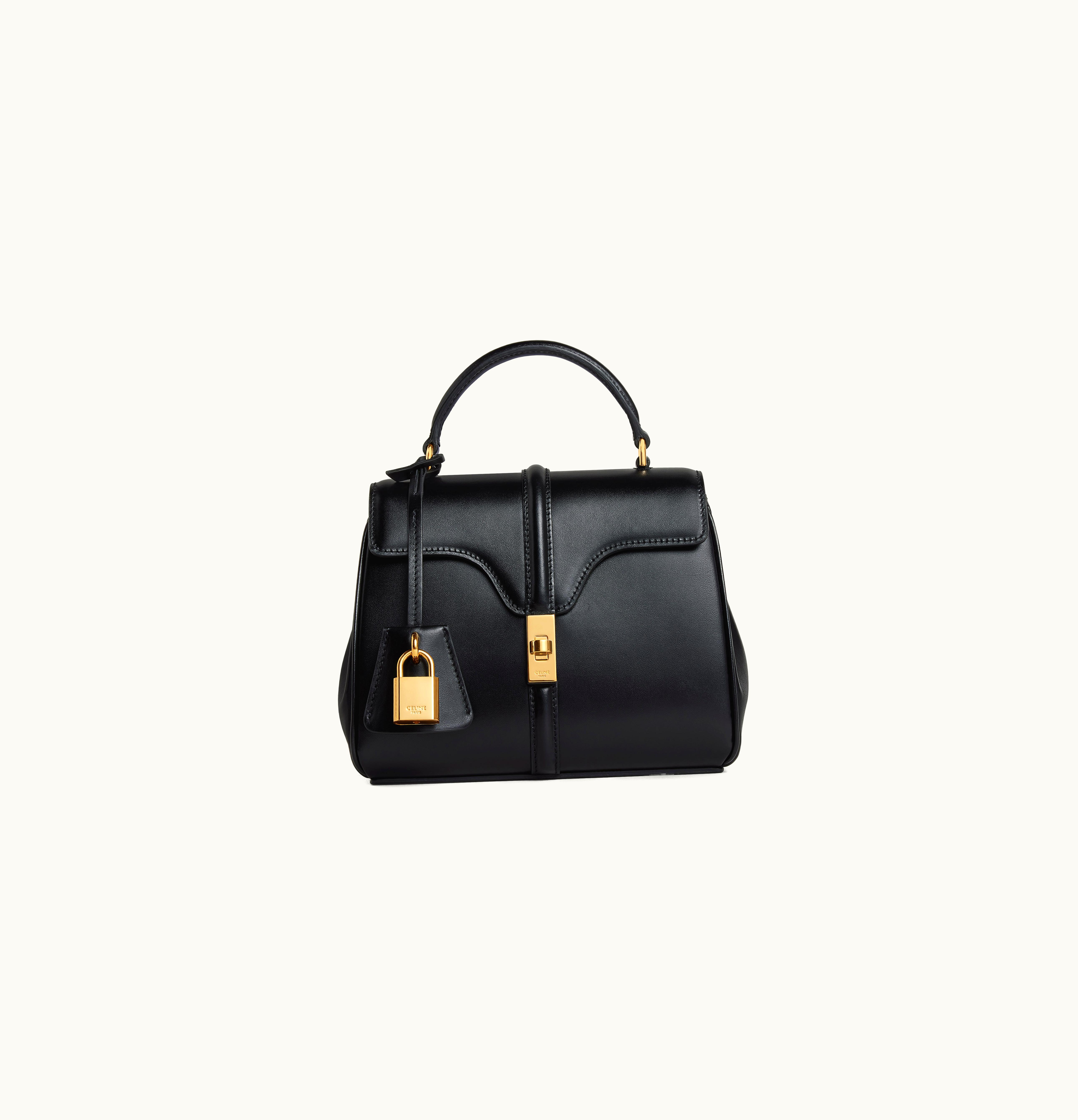 Celine Mini 16 In Satinated Calfskin Black | GLINT