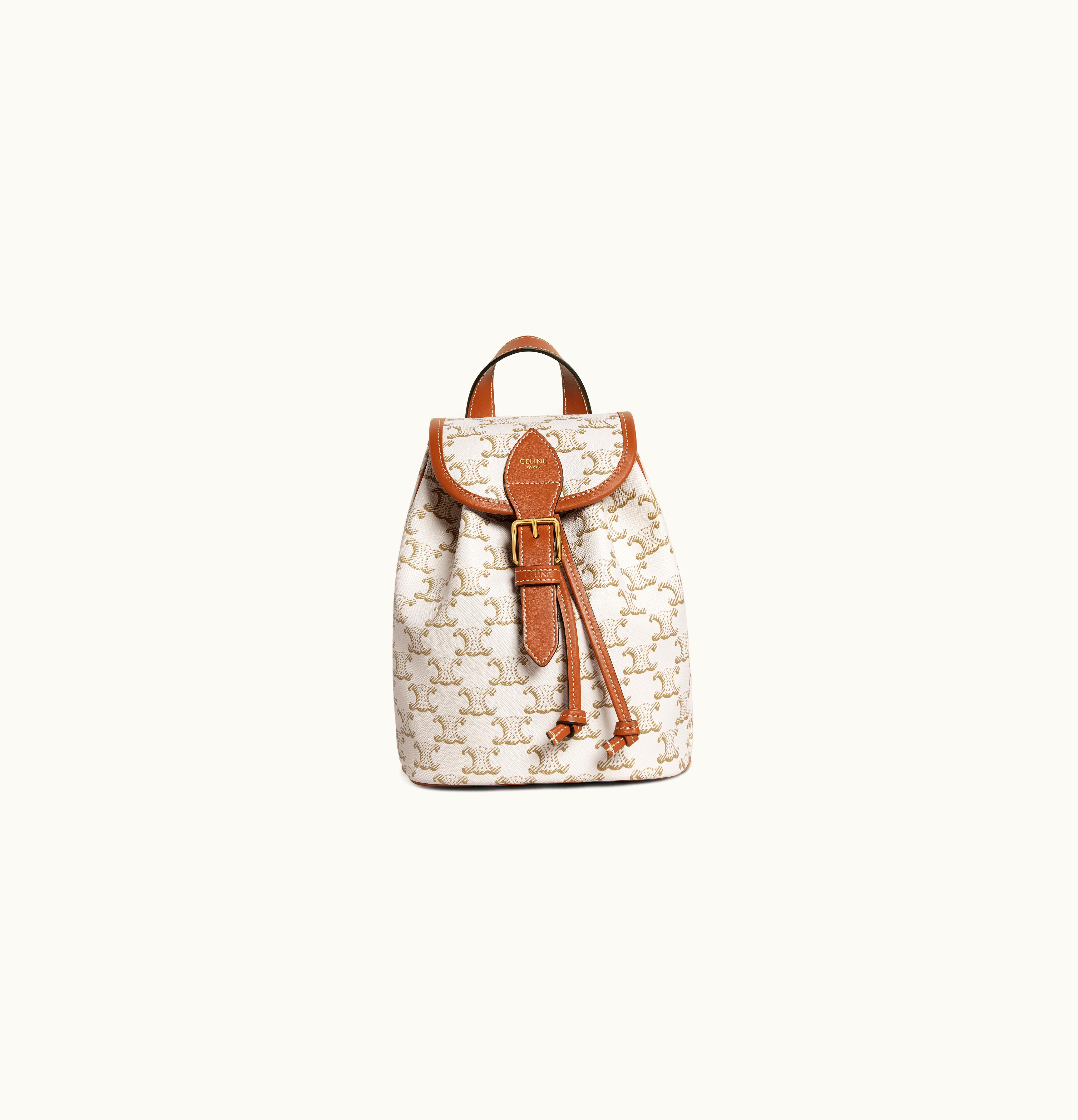 Celine Mini Backpack Folco In Triomphe Canvas And Calfskin White | GLINT