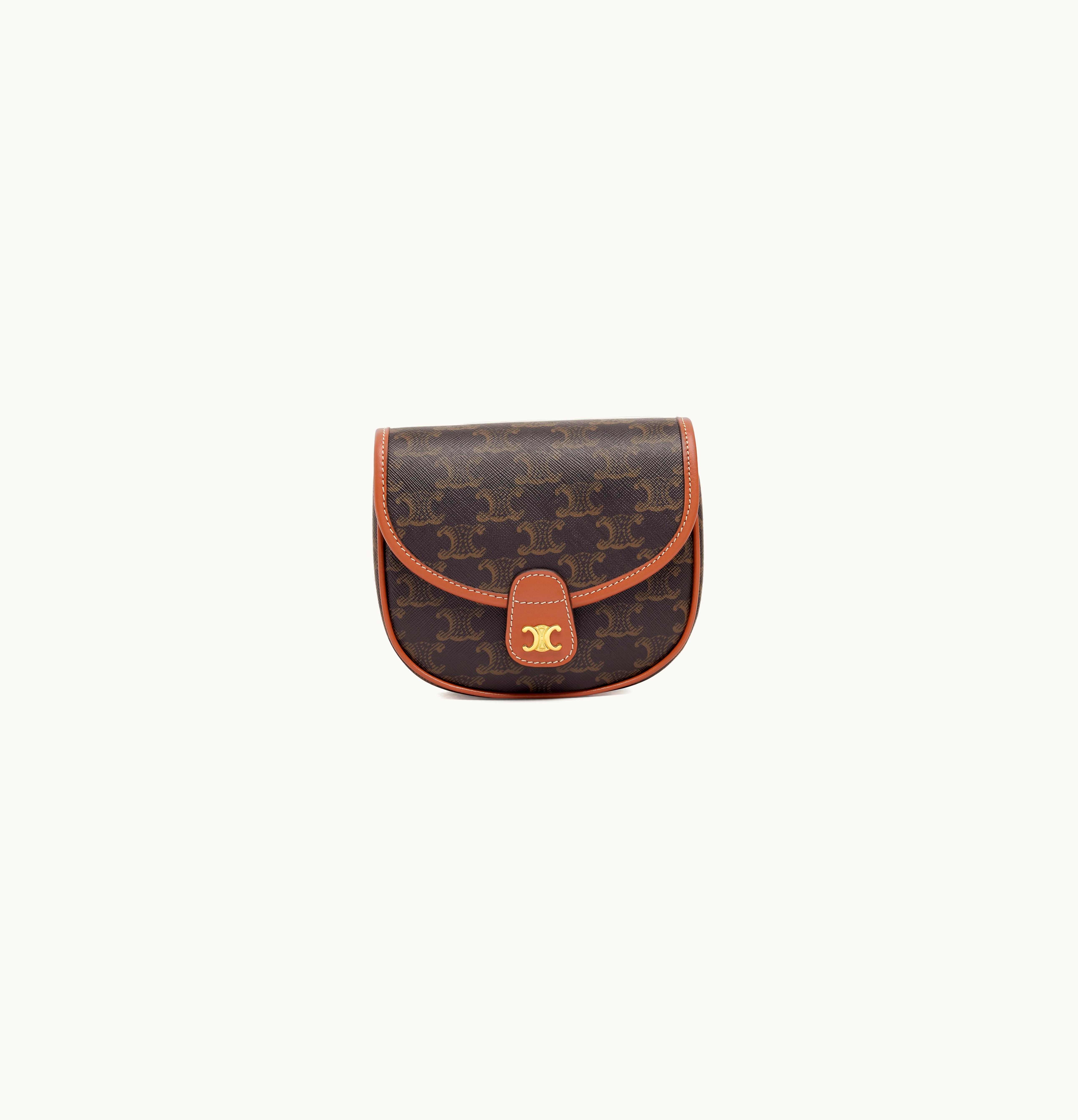 Celine Flap Bag In Triomphe Canvas With Calfskin Trim Gold | GLINT