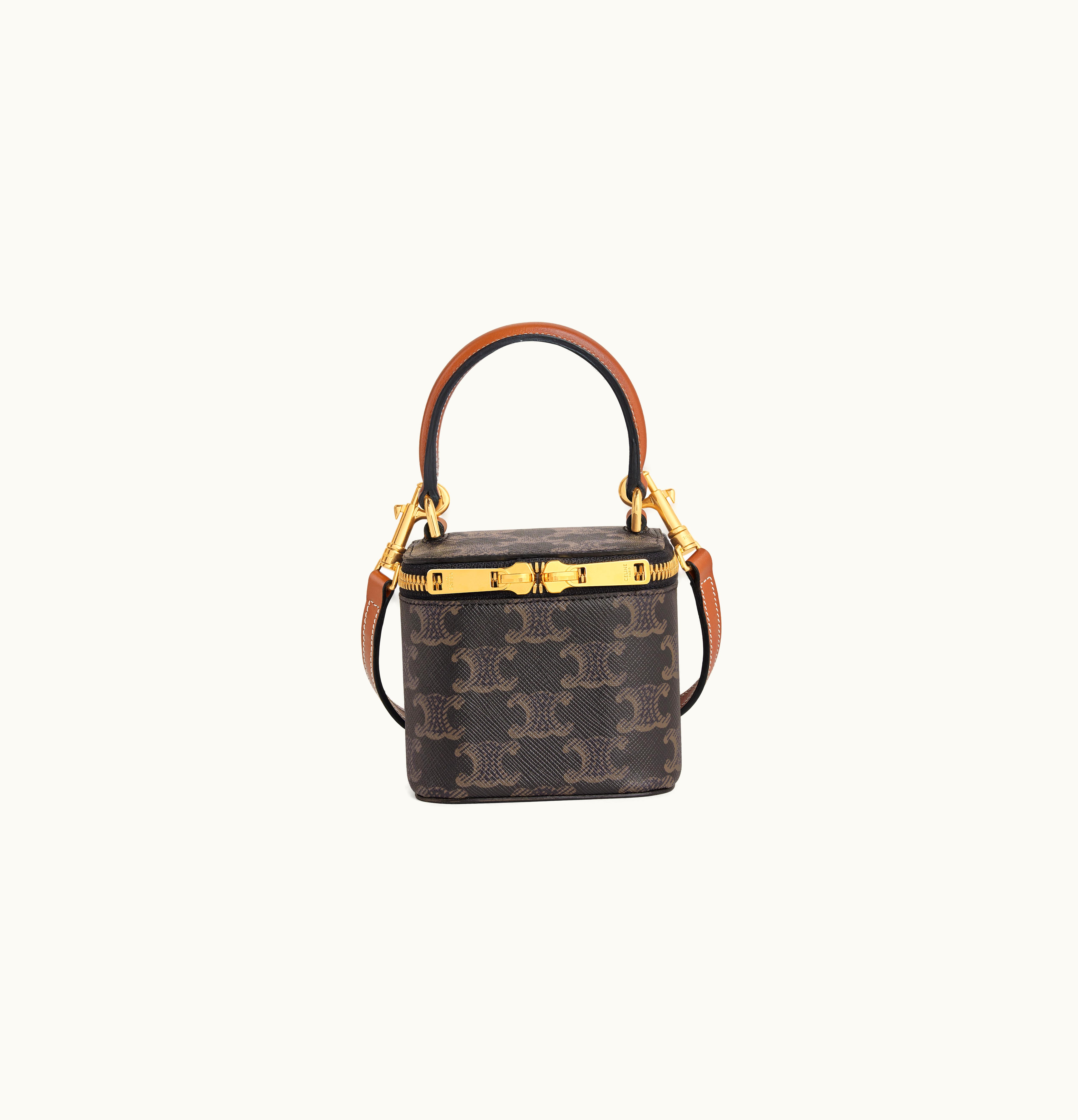 Celine Mini Vanity Case In Triomphe Canvas And Calfskin Tan | GLINT