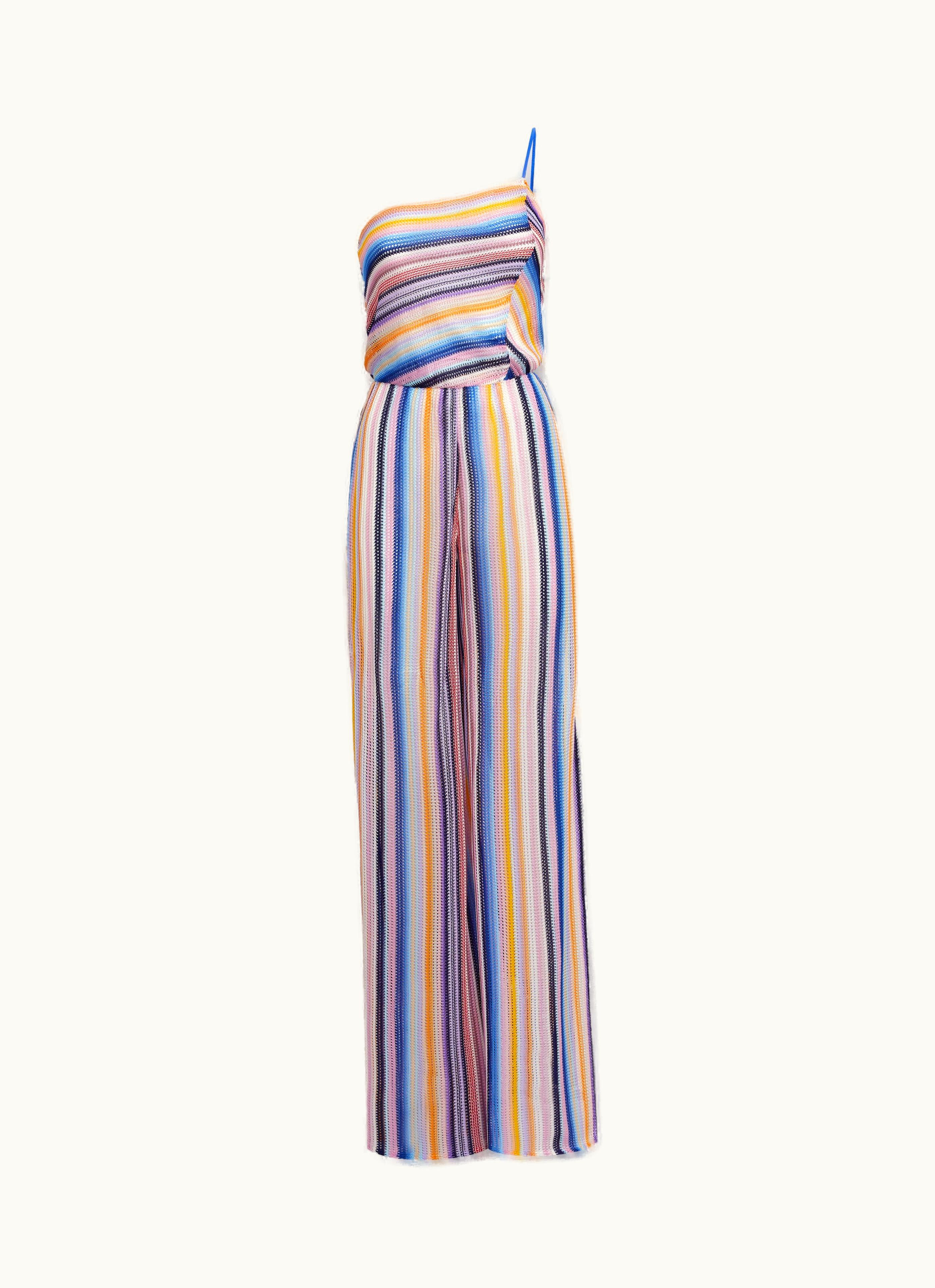 Missoni One-shoulder Jumpsuit In Striped Crochet Multicoloured | GLINT