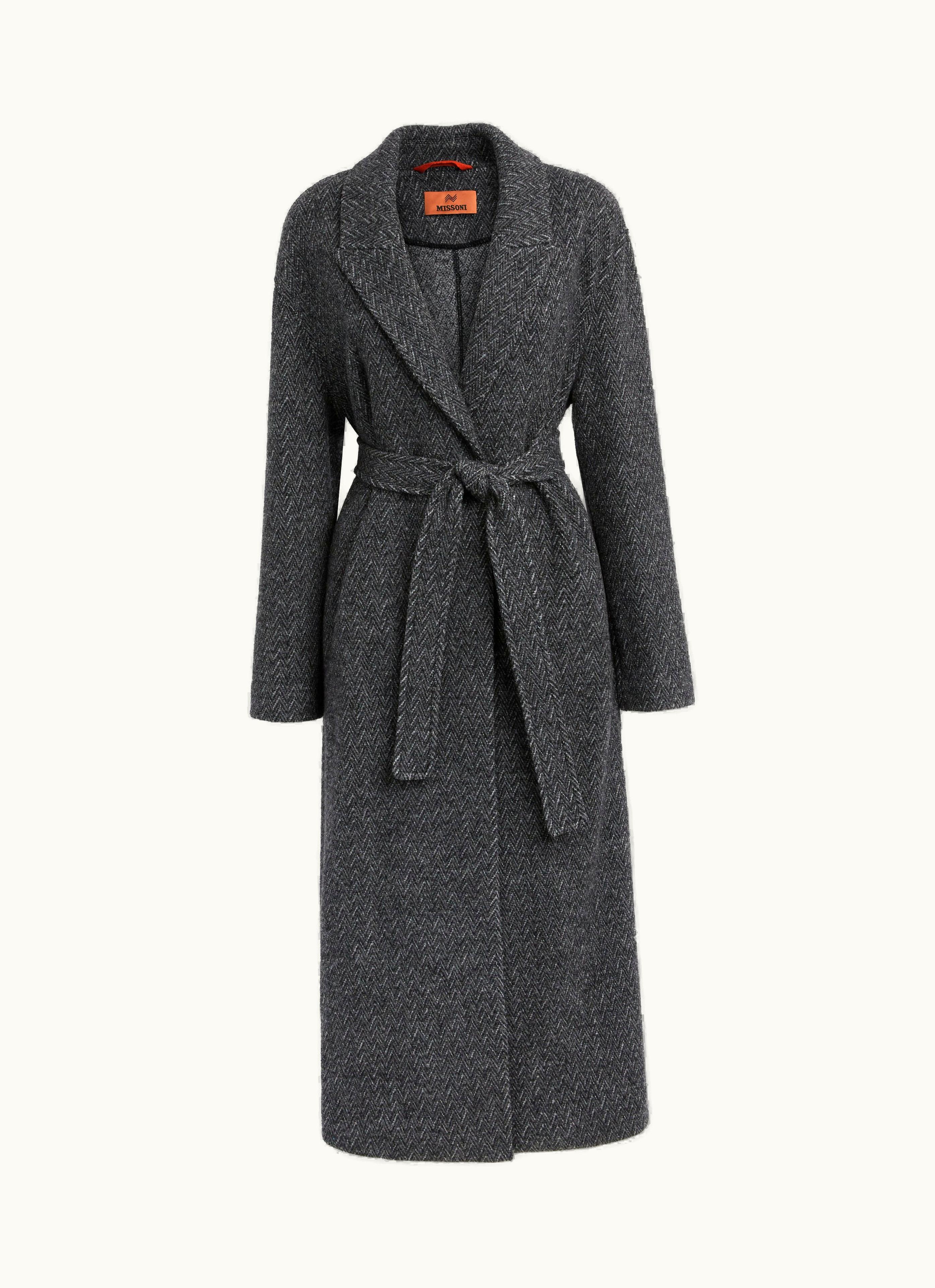 Missoni Wool Coat With Herringbone Pattern Black | GLINT