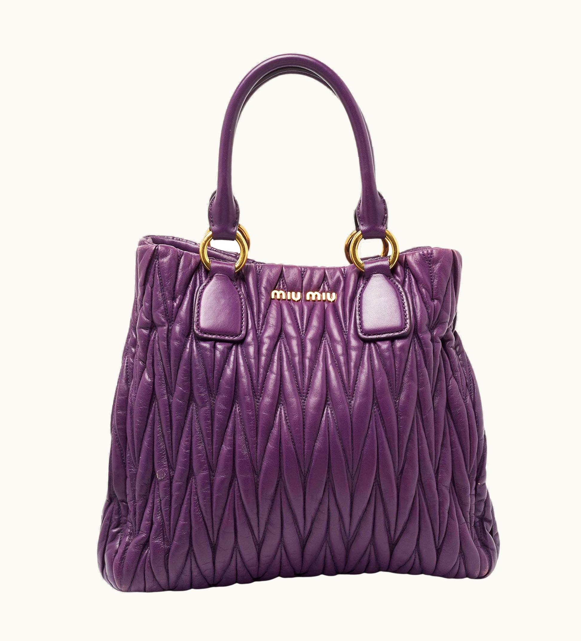 Miu Miu Purple Matelassé Leather Tote | GLINT