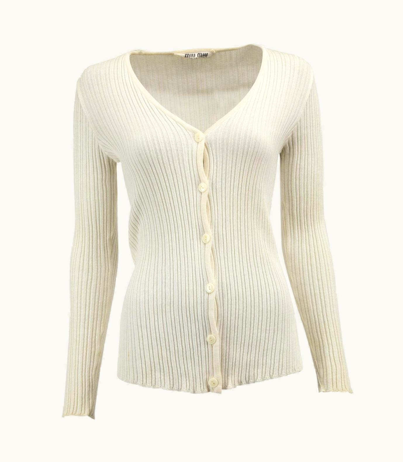 Miu Miu Women' Cream Pleated Cardigan | GLINT