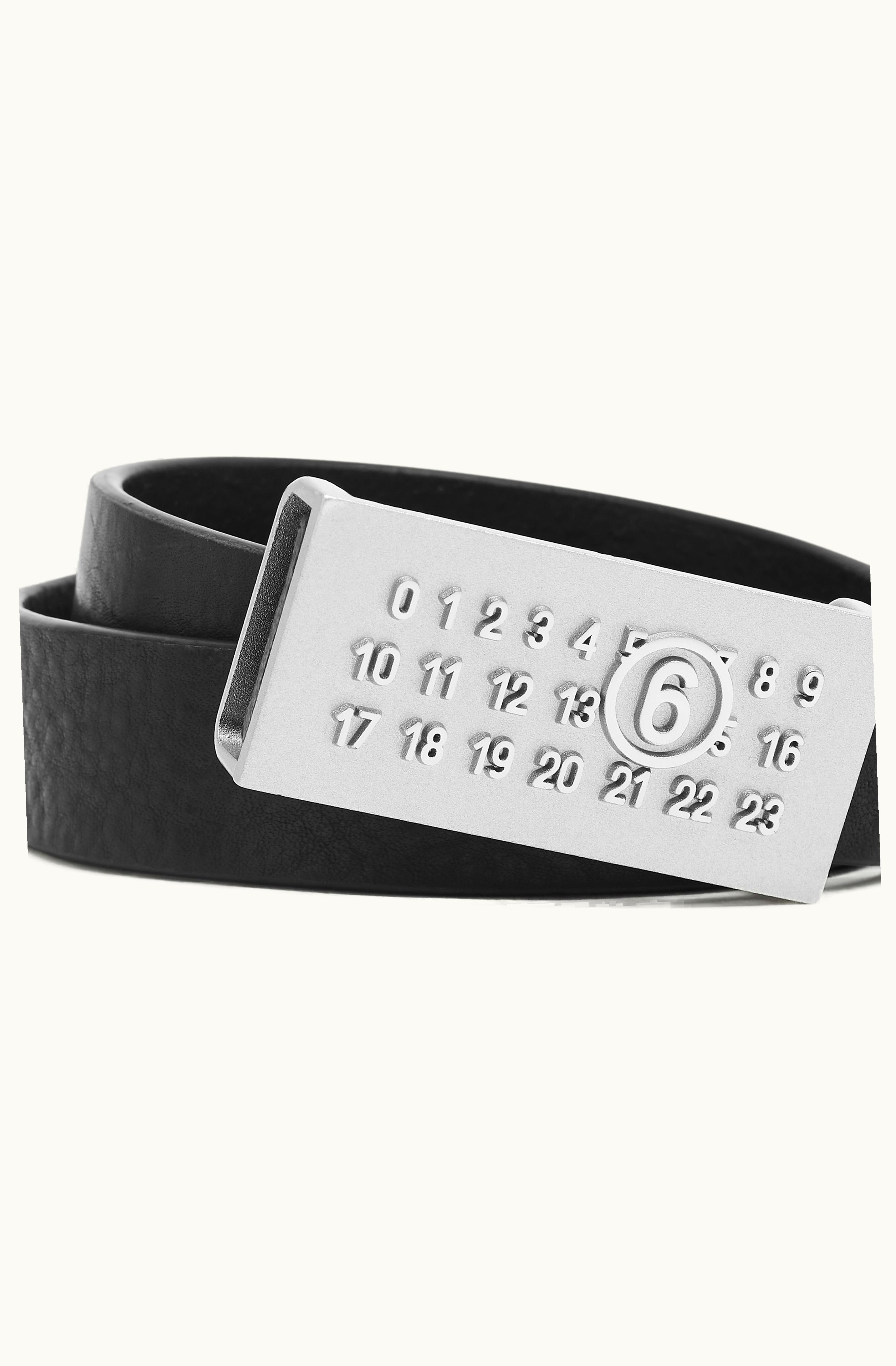 MM6 Maison Margiela Numeric Logo Black Calf Leather Belt | GLINT