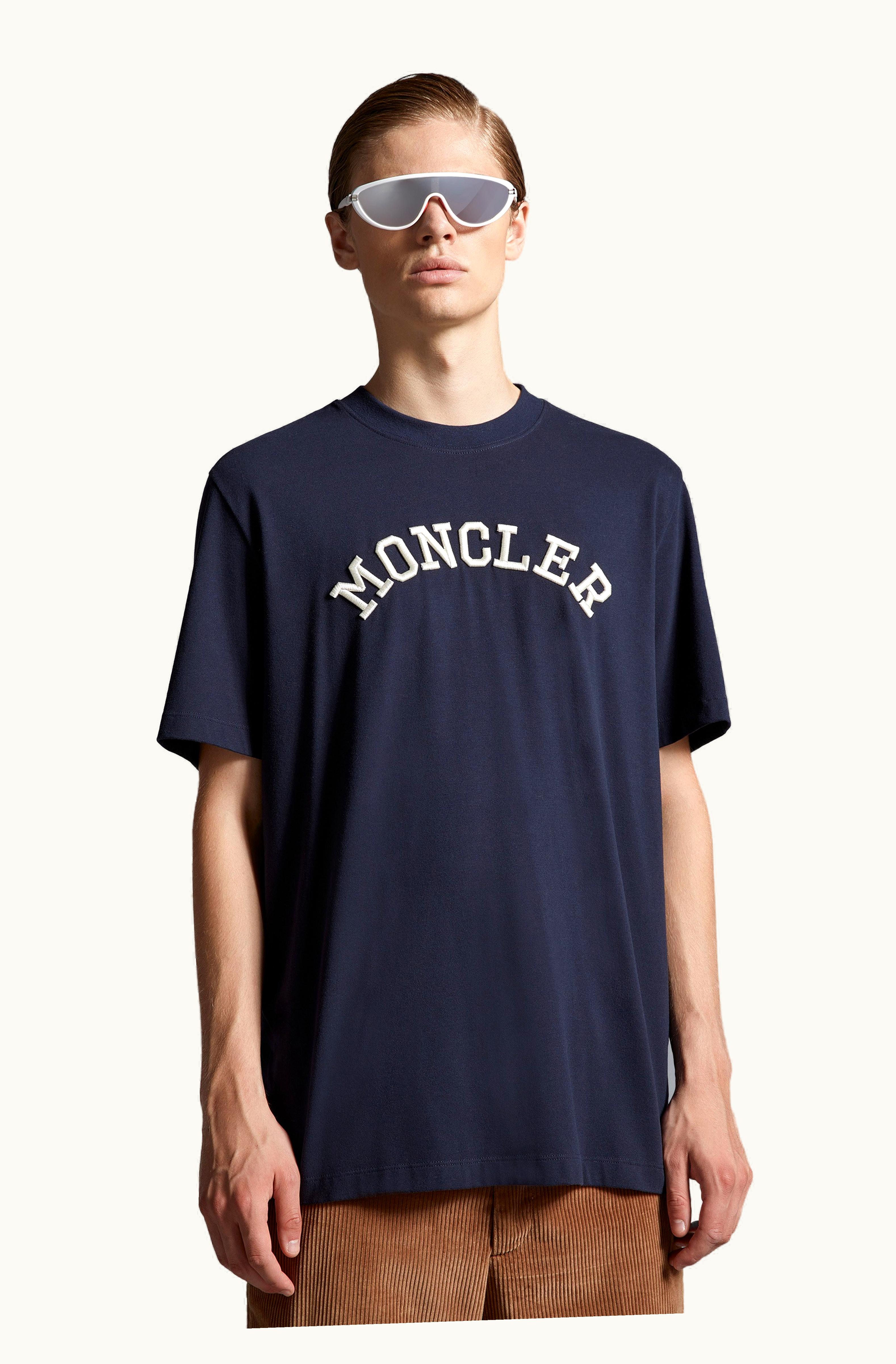 Moncler Embroidered Logo T-Shirt Navy Blue | GLINT