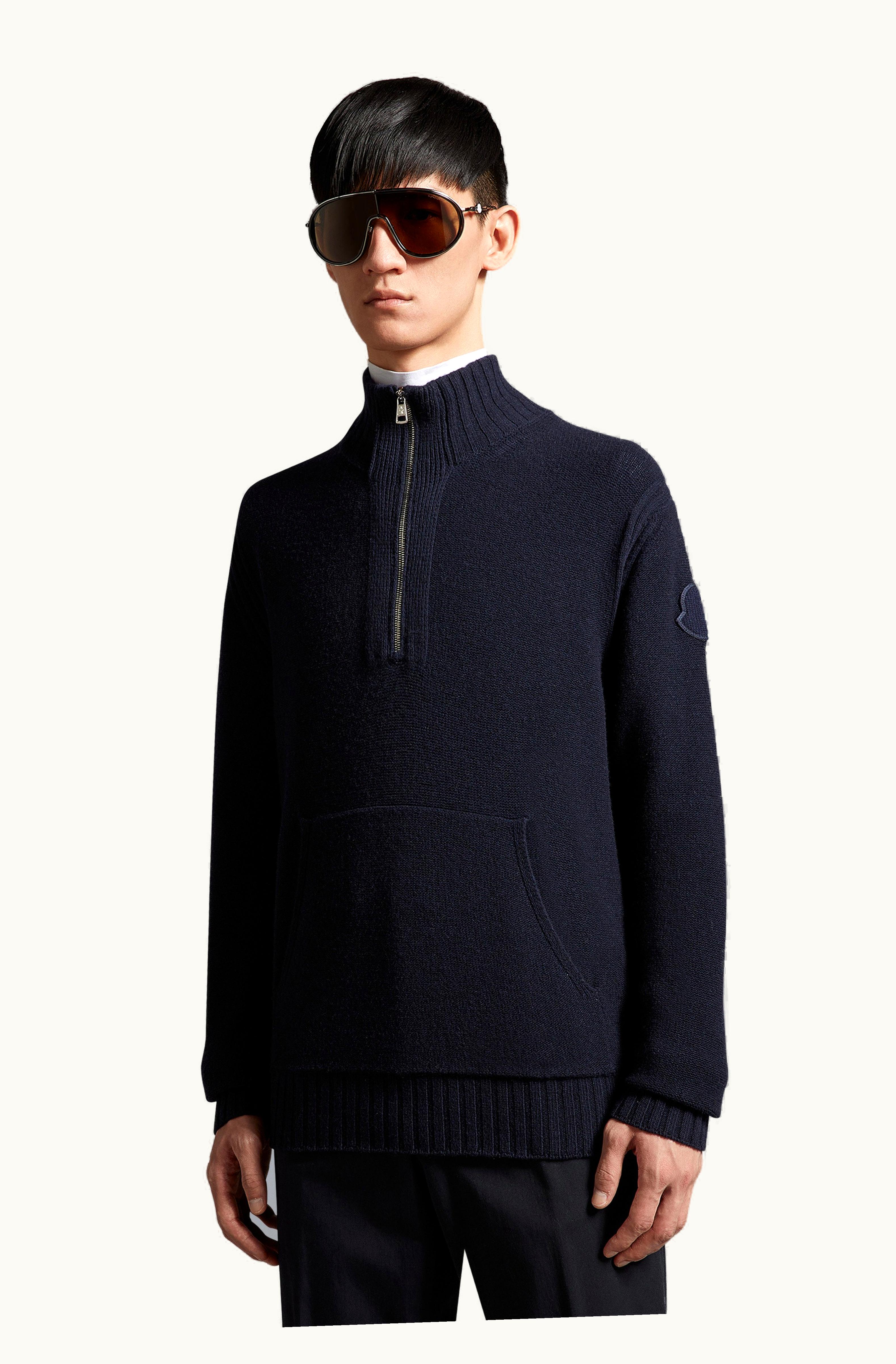 Moncler Wool Polo Neck Jumper Navy Blue | GLINT