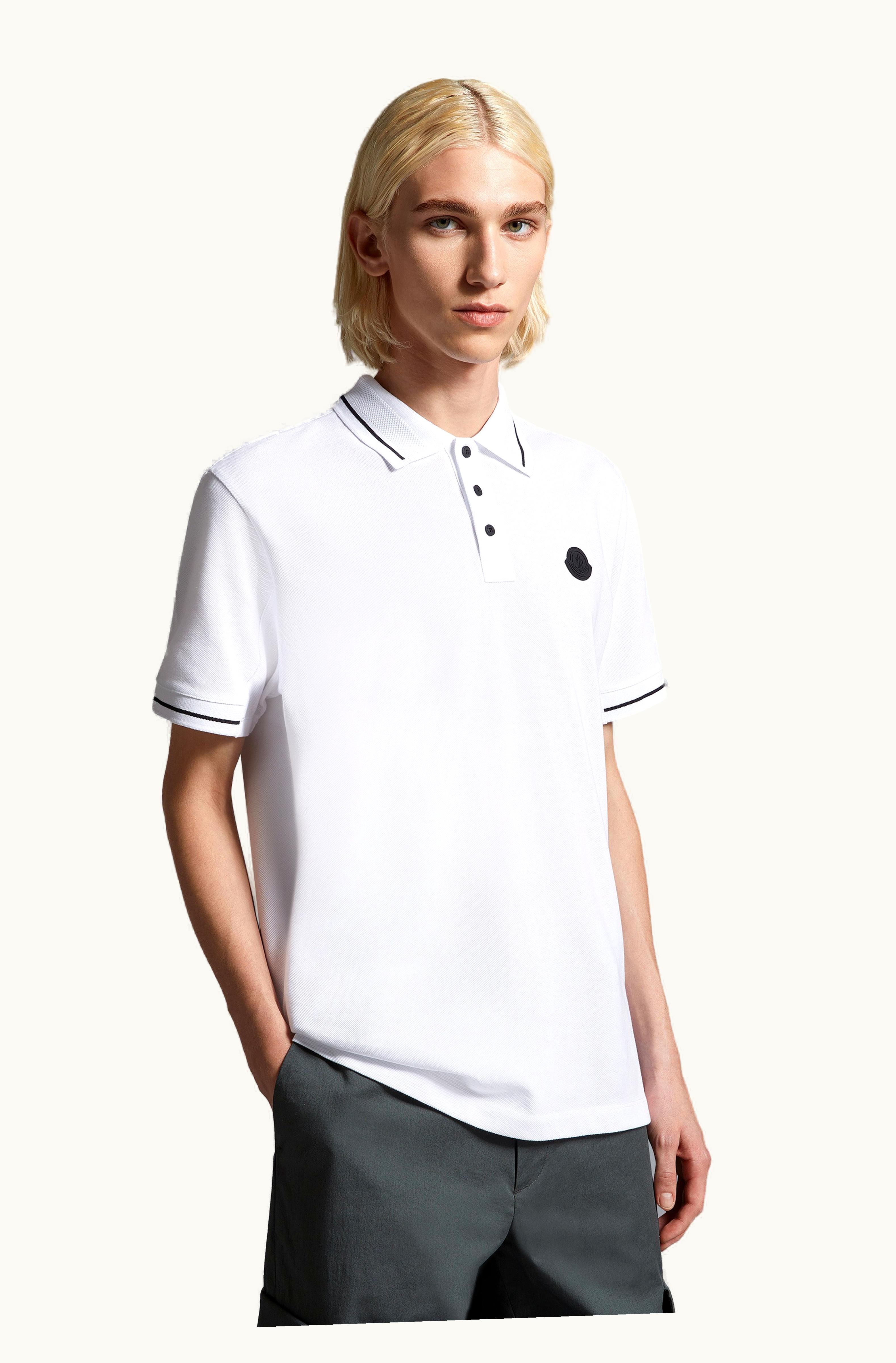 Moncler Logo Patch Polo Shirt Optical White | GLINT