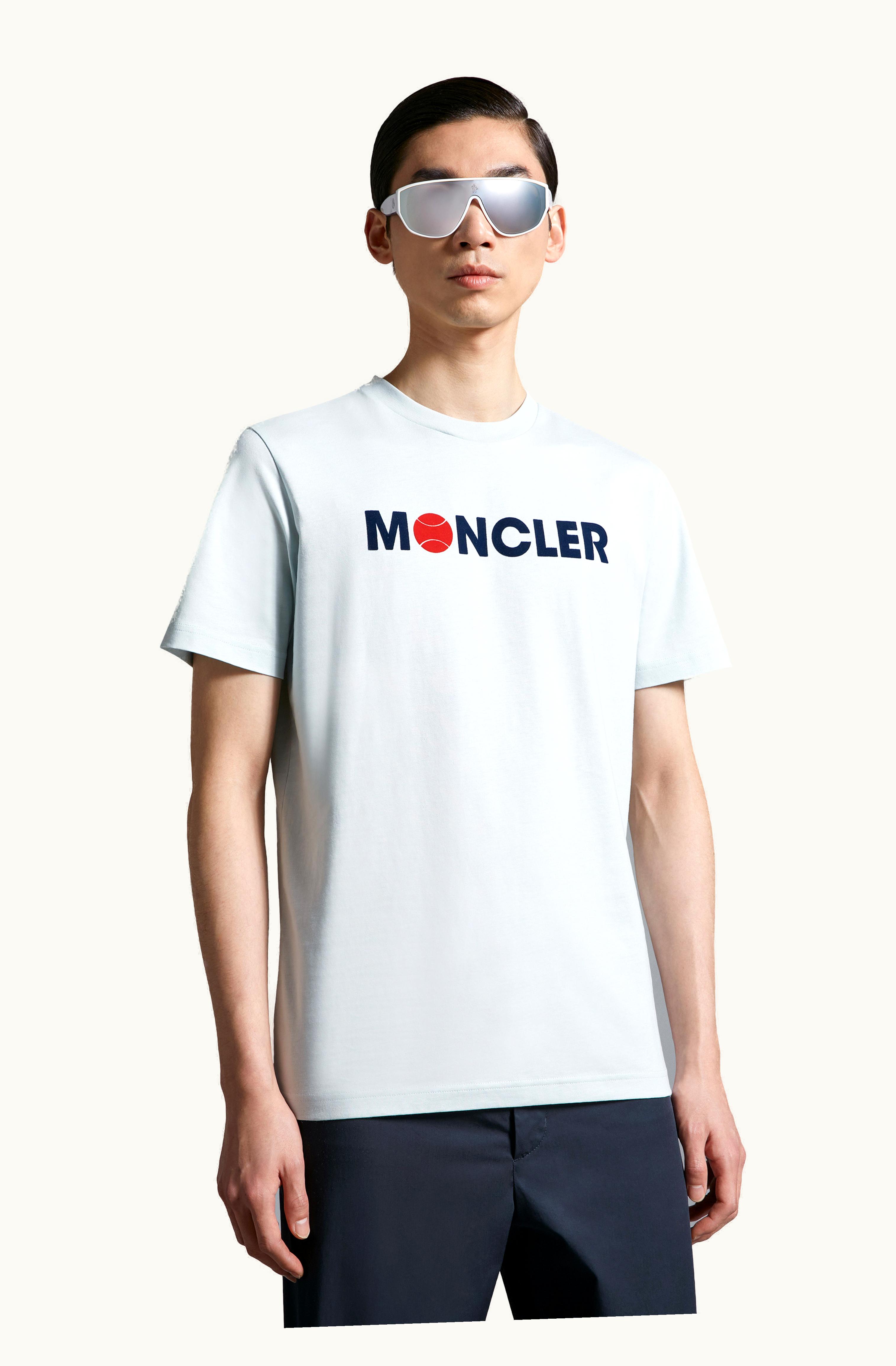Moncler Flocked Logo T-Shirt Light Blue | GLINT