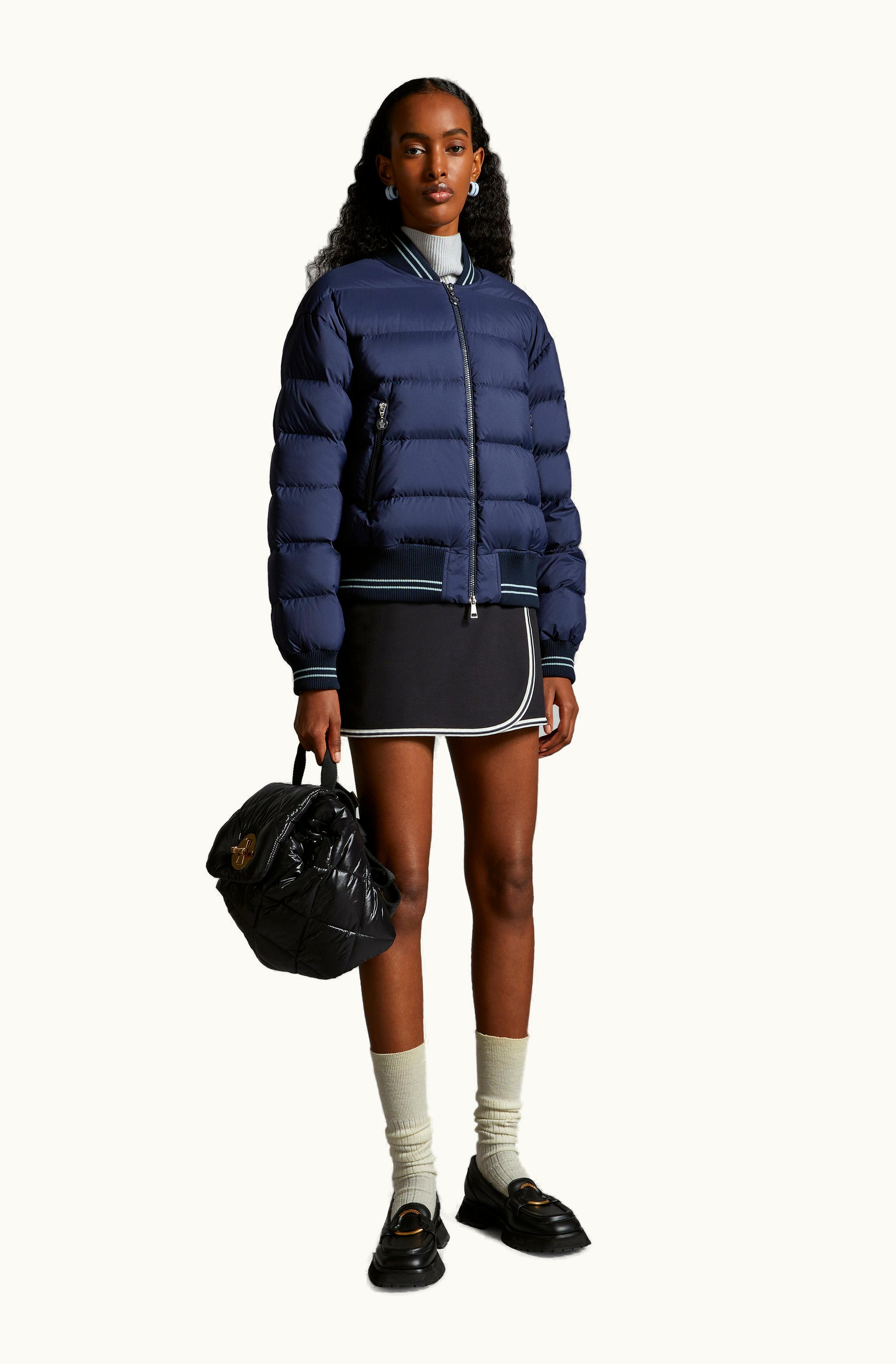 Moncler Argo Down Bomber Jacket Night Blue | GLINT