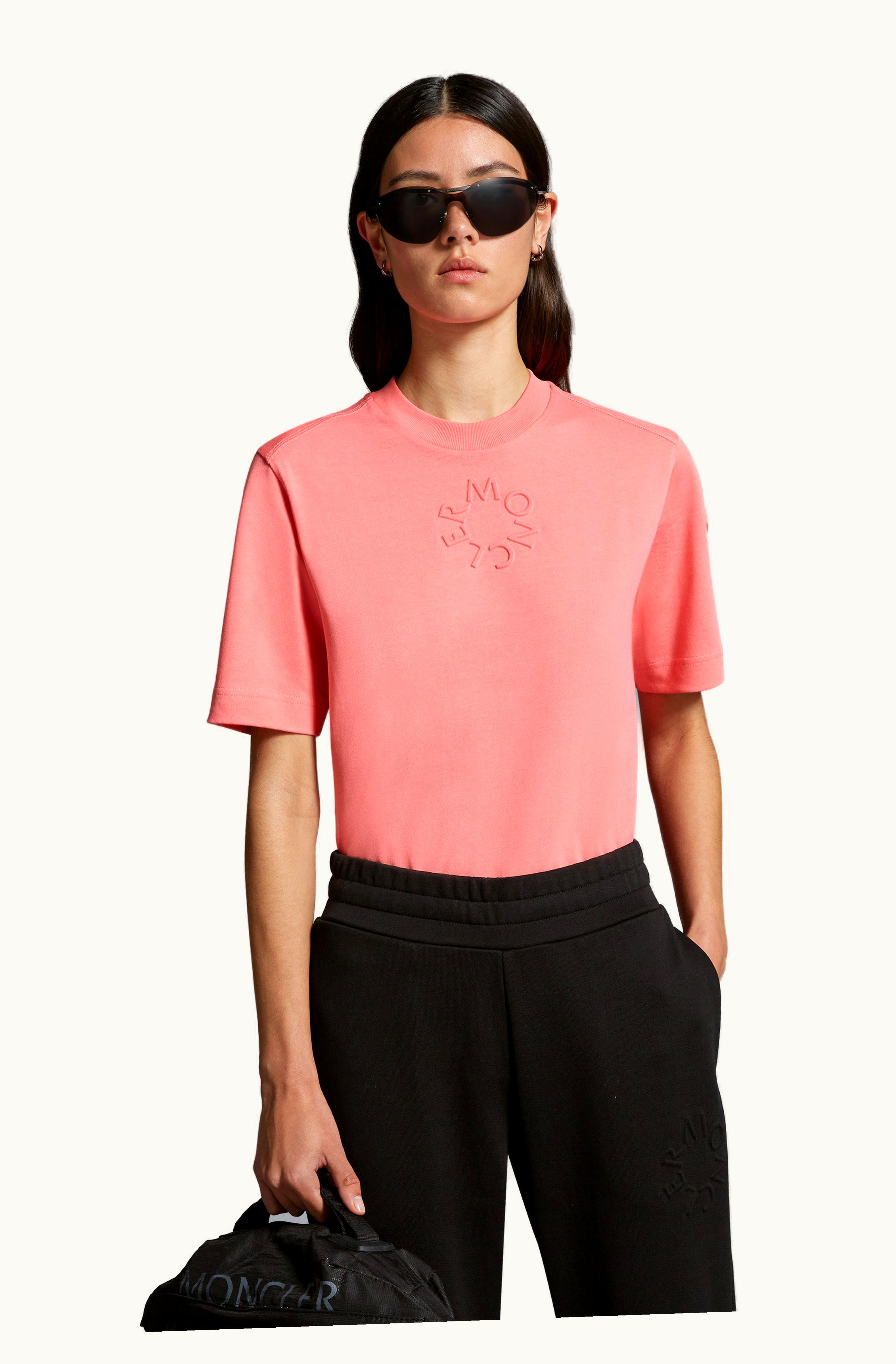 Moncler Embossed Logo T-Shirt Pink | GLINT