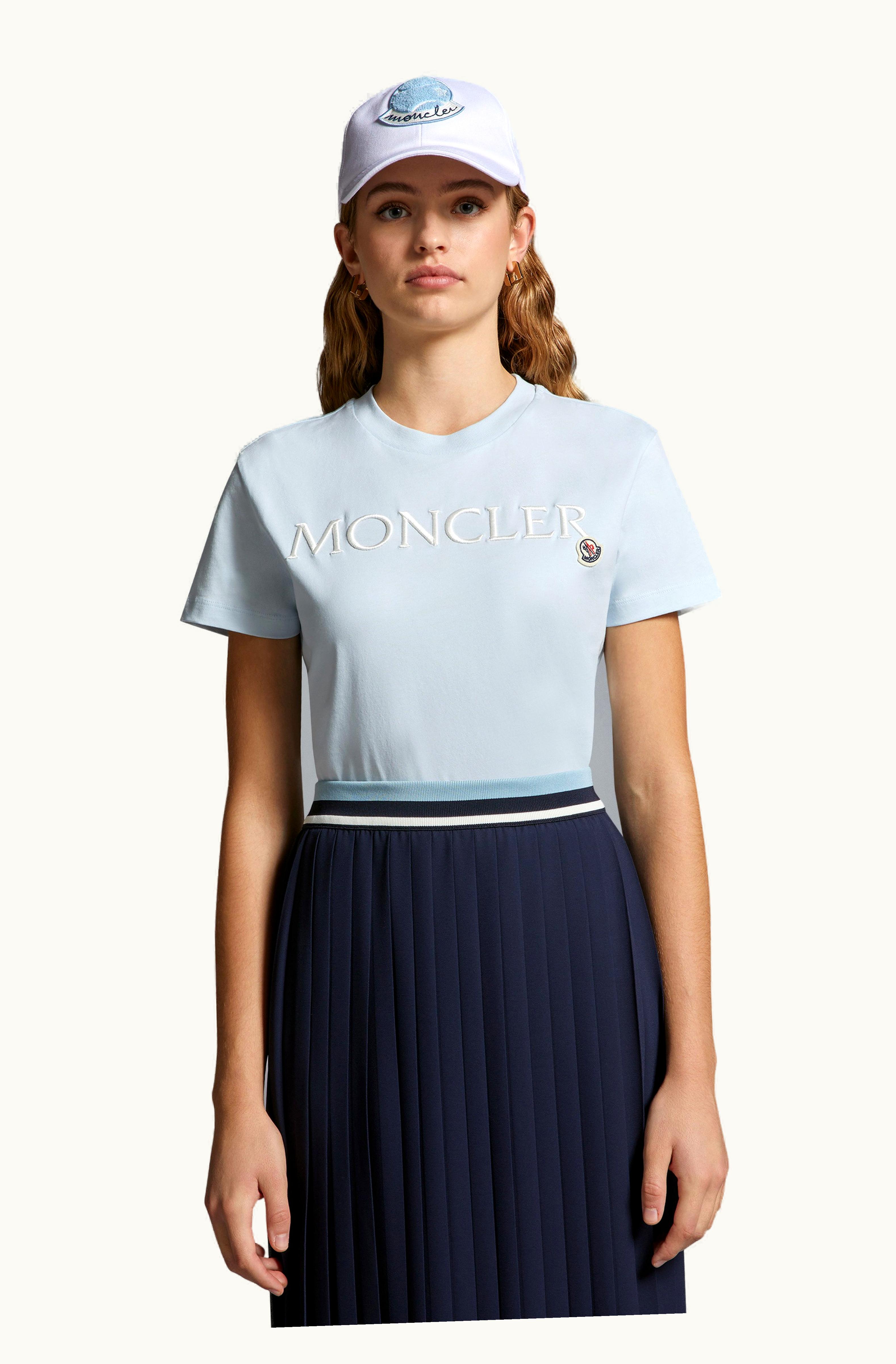 Moncler Embroidered Logo T-Shirt Light Blue | GLINT