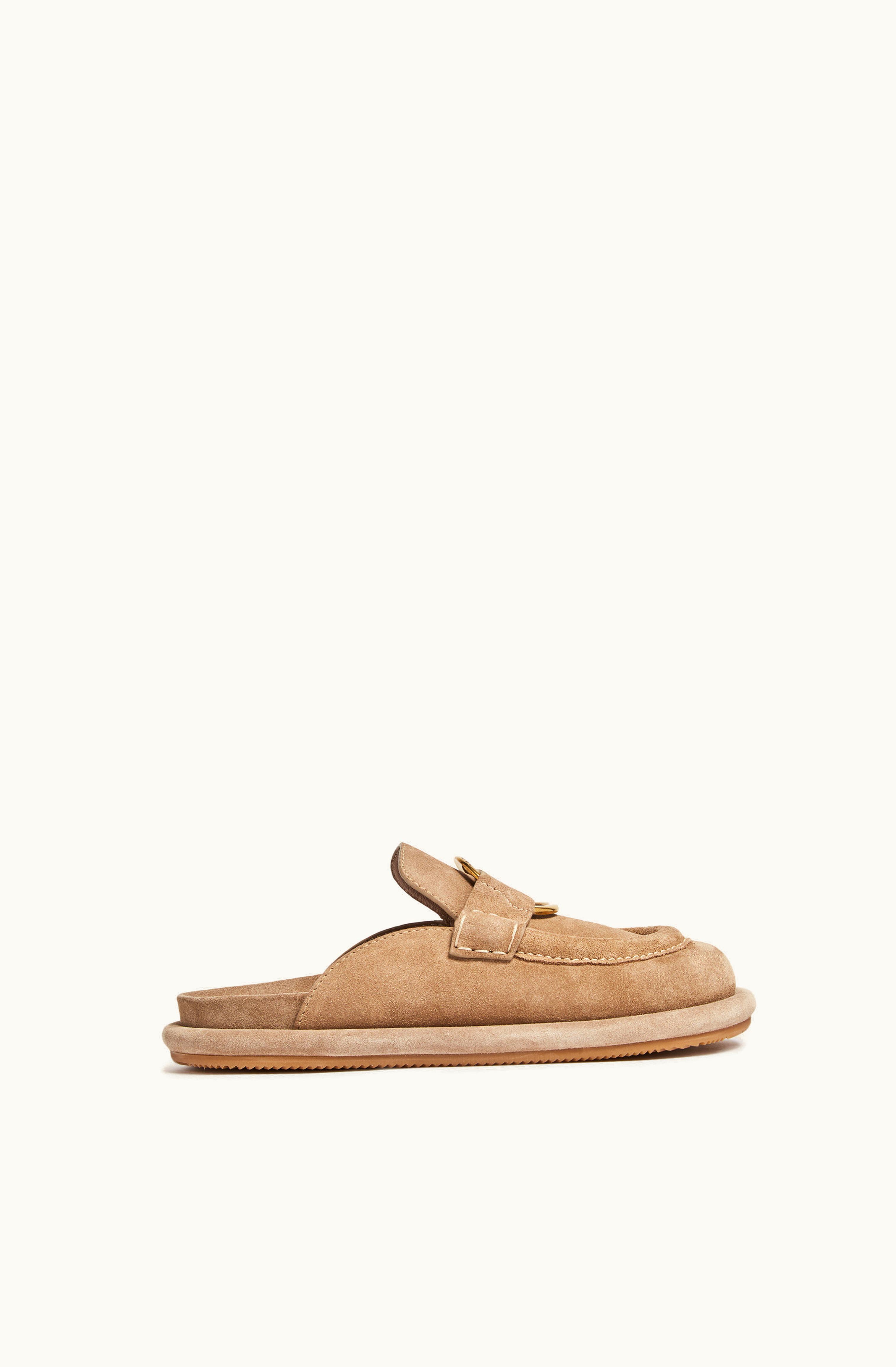 Moncler Bell Suede Mules Beige | GLINT