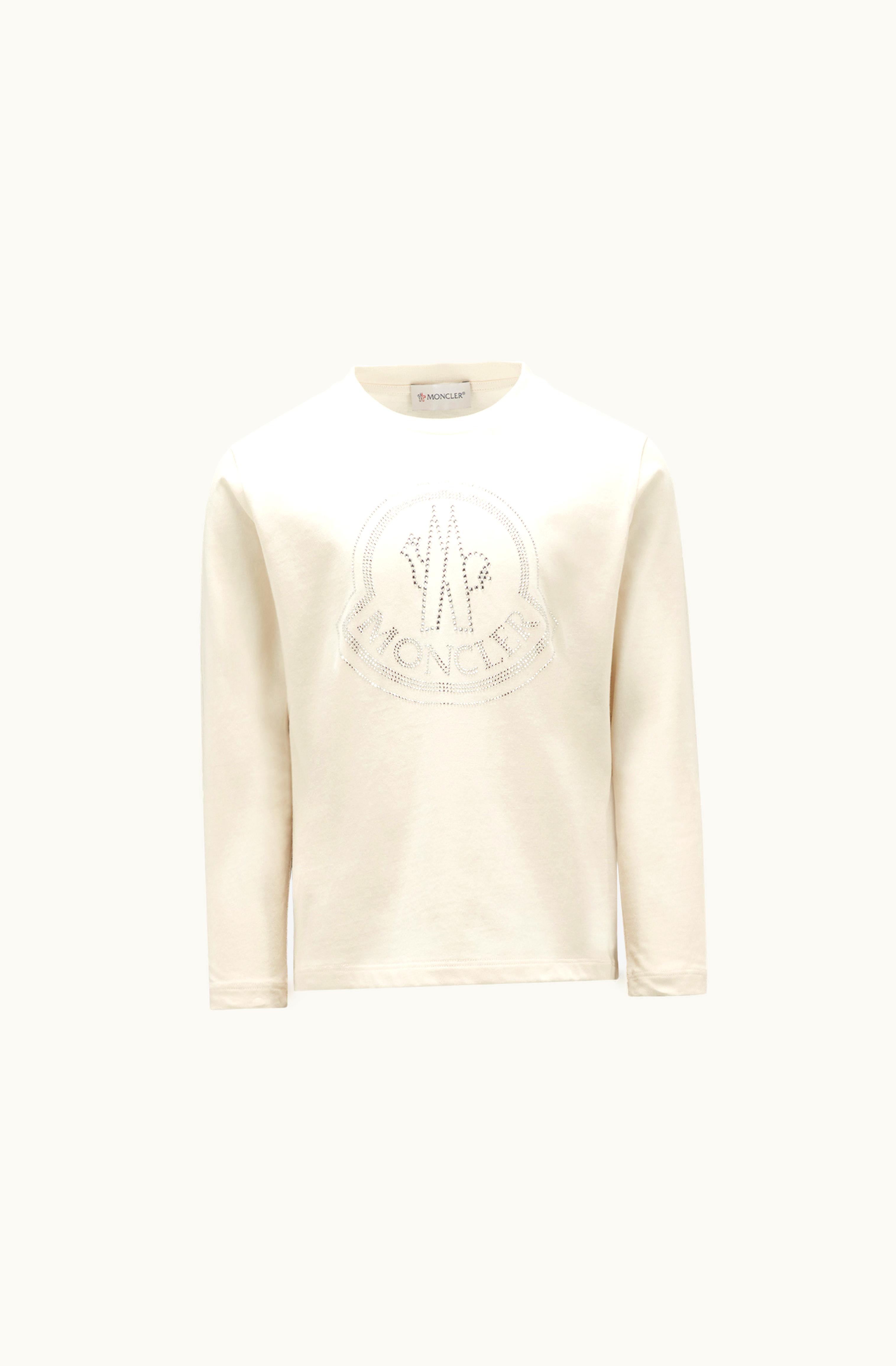 Moncler Crystal Logo Long Sleeve T-Shirt Beige | GLINT