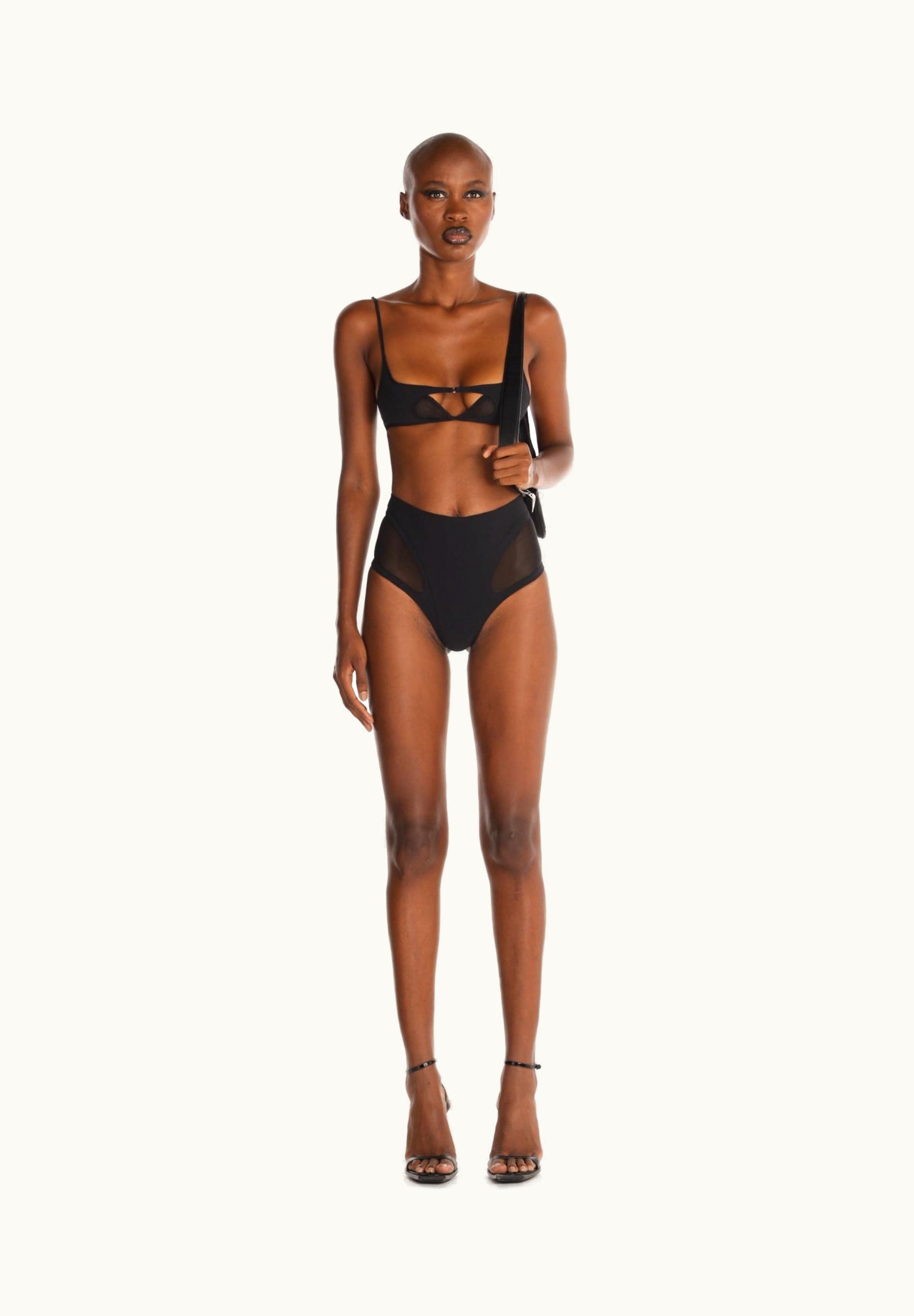 Mugler Black criss-crossed Bikini Top | GLINT