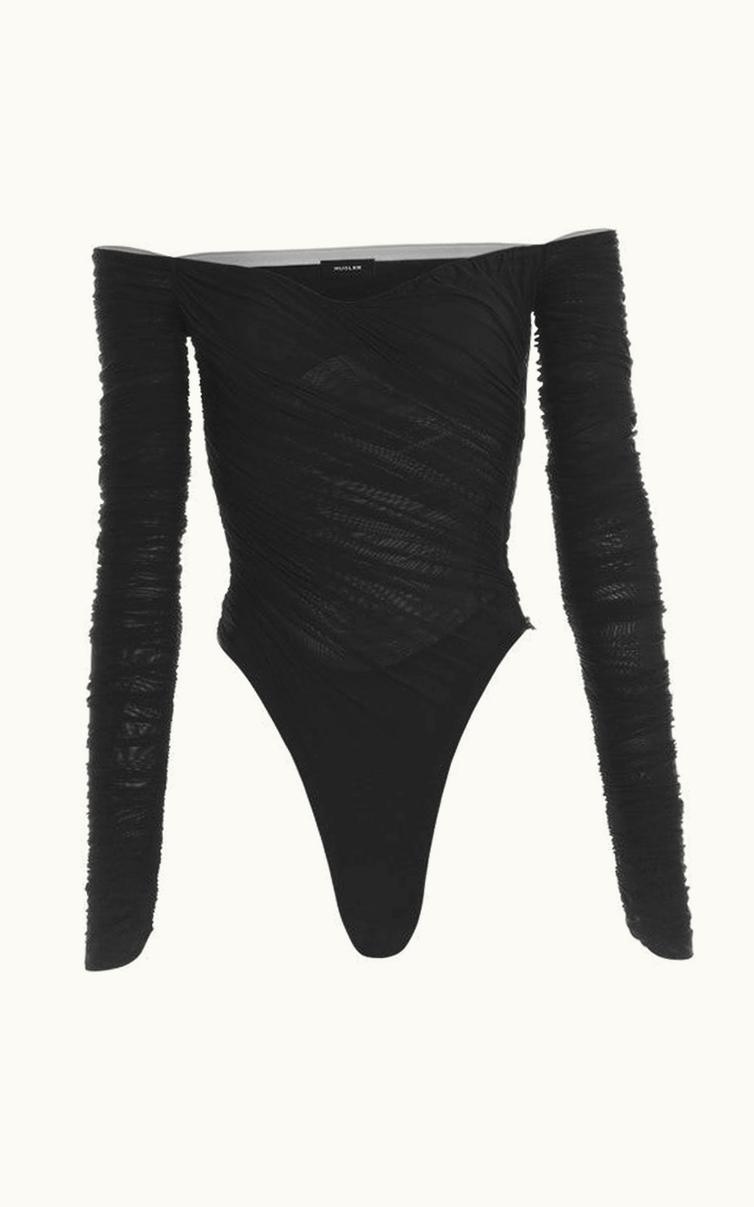 Mugler Black Ruched Mesh Bodysuit 24P1BO0224595_1999 | GLINT