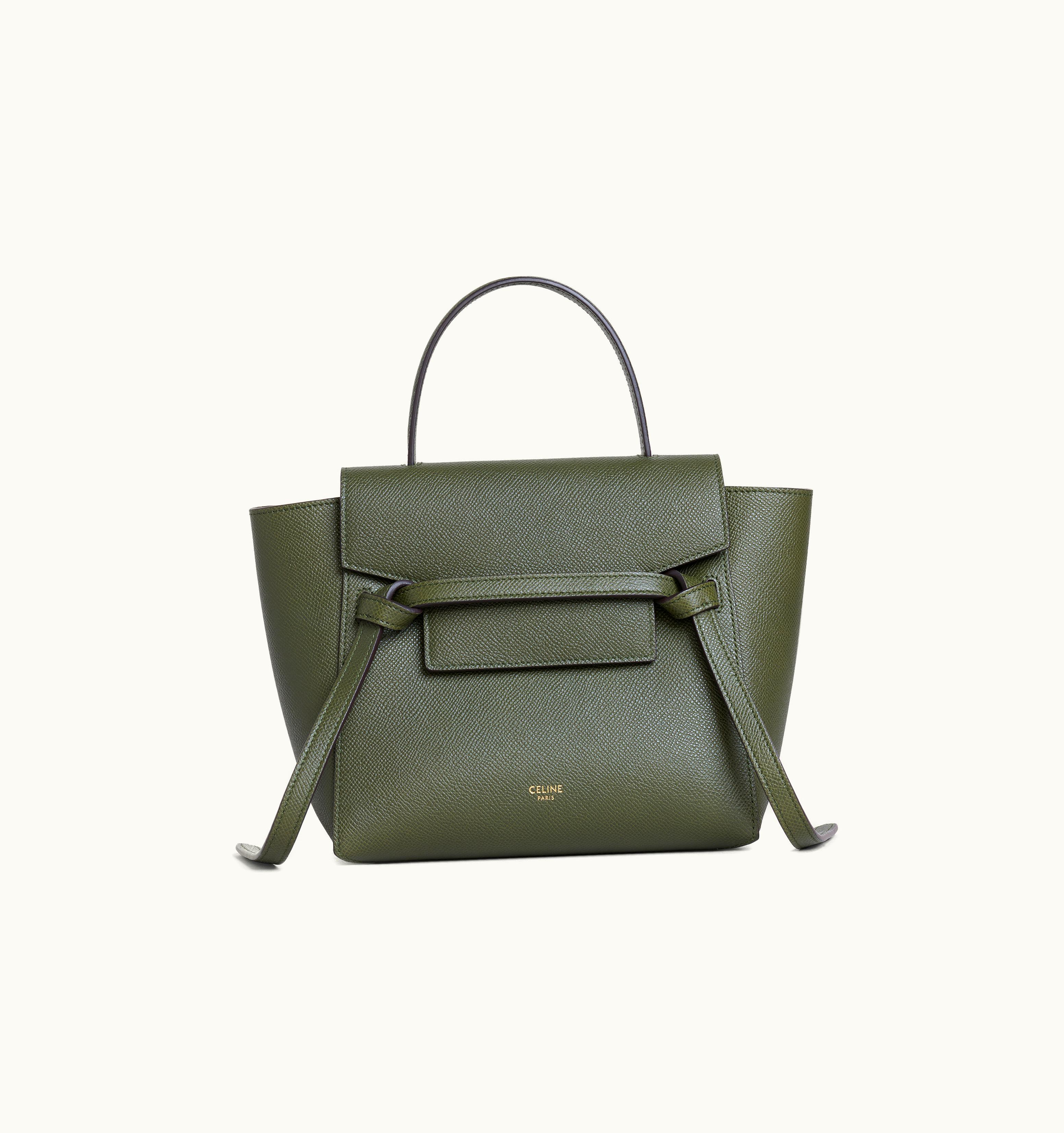 Celine Nano Belt Bag In Grained Calfskin Khaki | GLINT