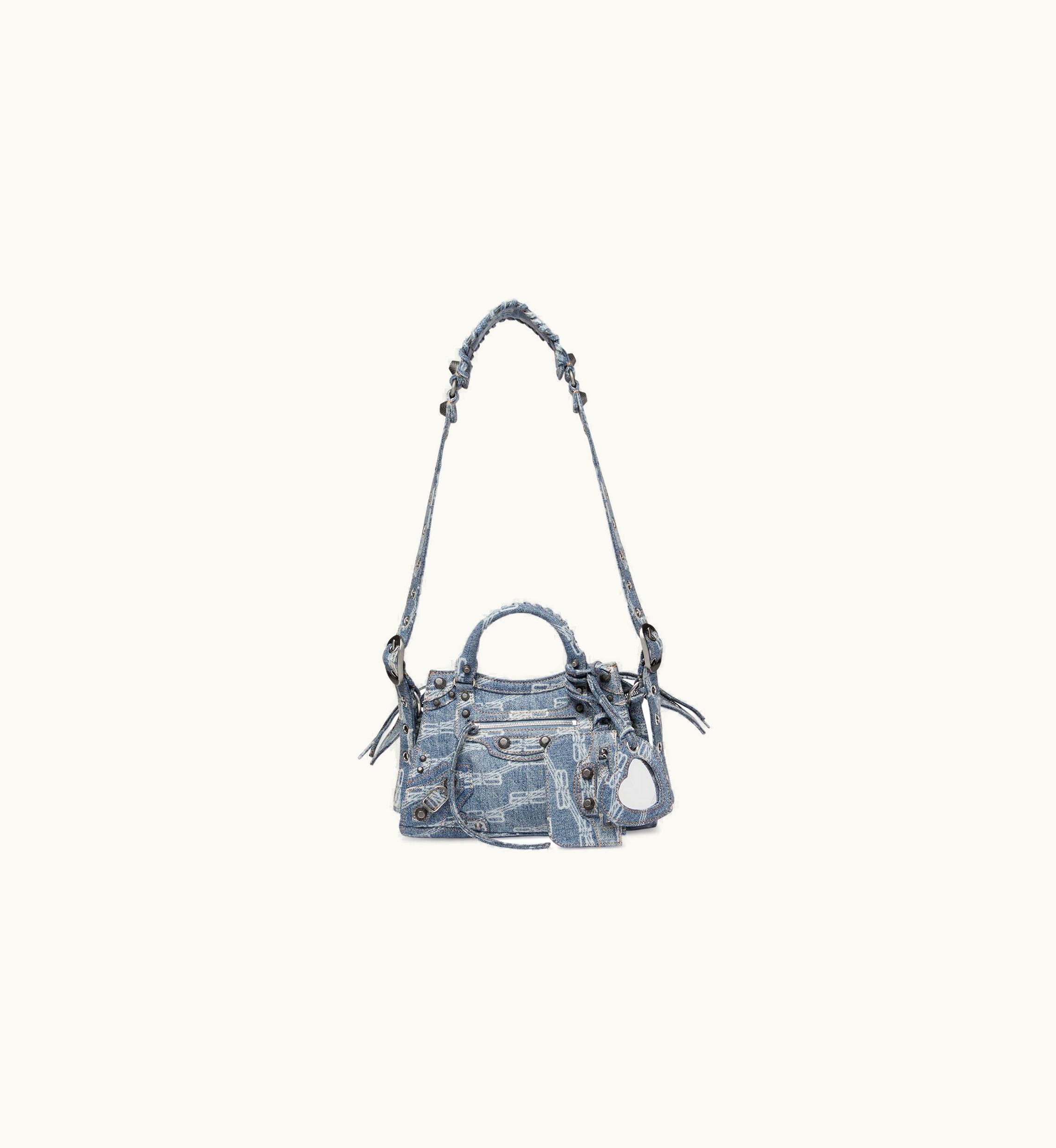 Balenciaga Neo Cagole Xs Handbag Bb Monogram Bleached Denim | GLINT