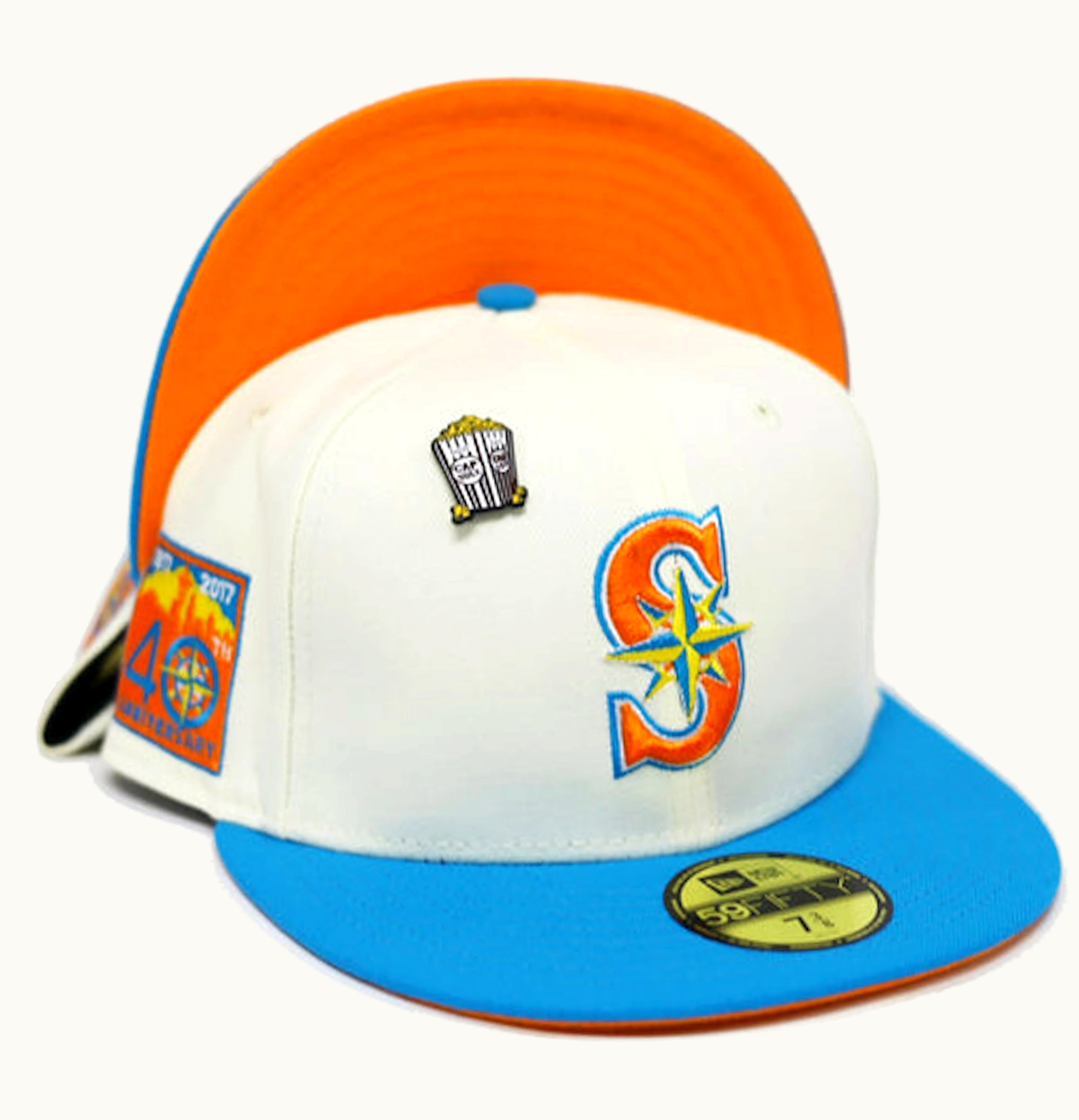 New Era Seattle Mariners Movie Collection 40th Anniversary Patch Capsule Hats Exclusive 59Fifty Fitted Hat White Orange | GLINT