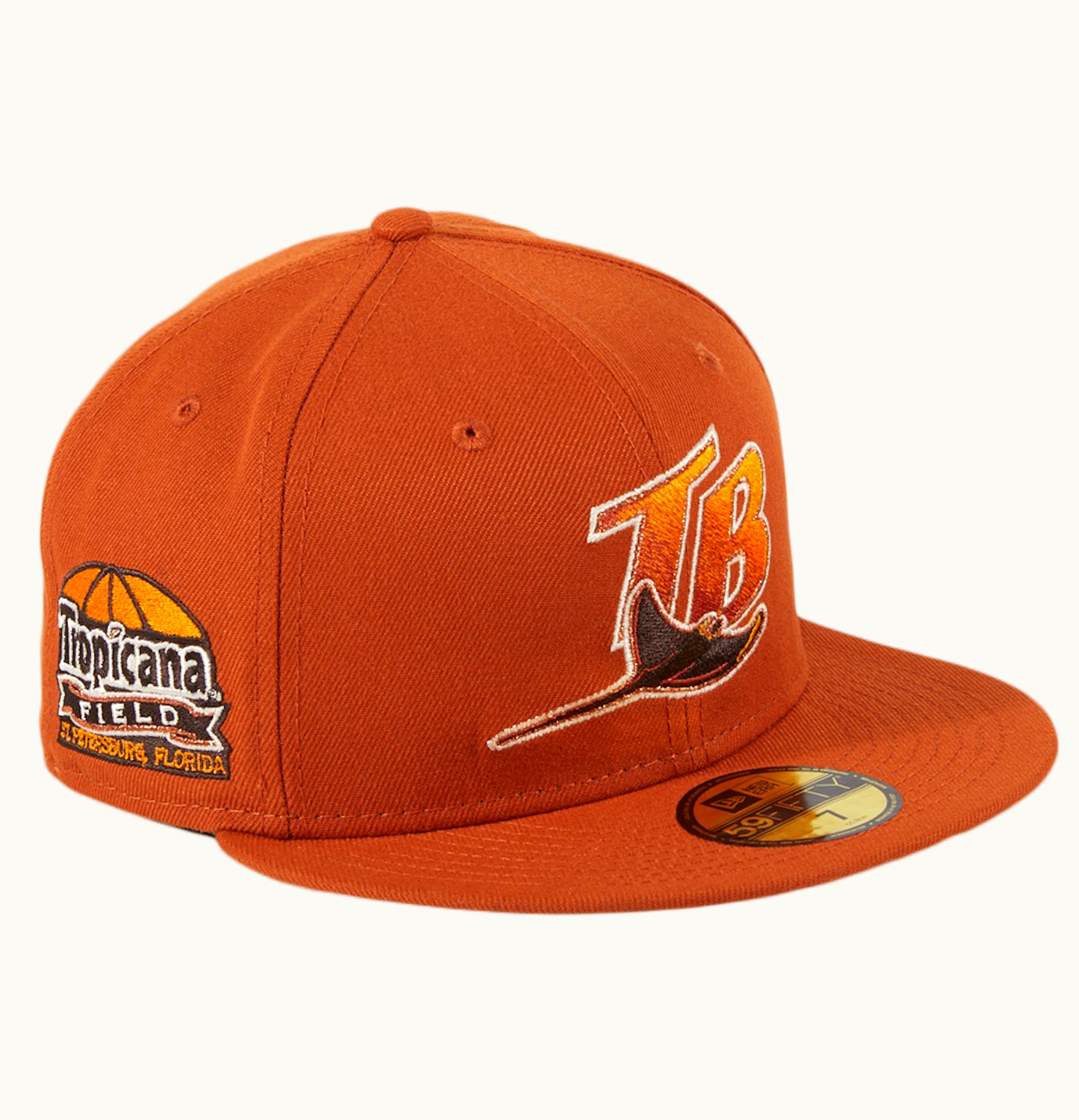 New Era Campfire Tampa Bay Rays Tropicana Stadium Patch Hat Club Exclusive 59Fifty Fitted Hat Burnt Orange | GLINT
