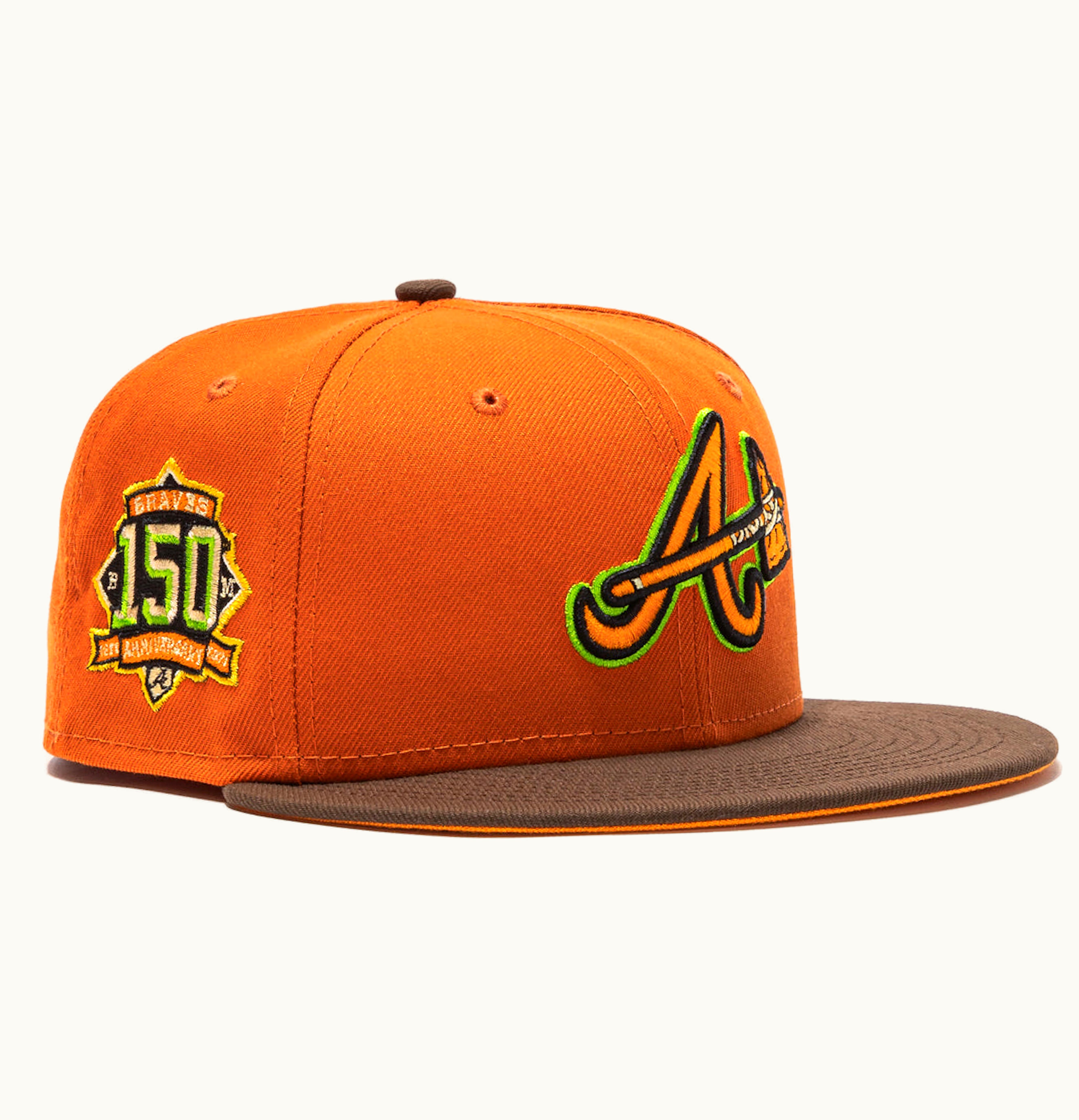 New Era Atlanta Braves Beer Pack 150th Anniversary Patch Alternate Hat Club Exclusive 59Fifty Fitted Hat Orange Brown | GLINT