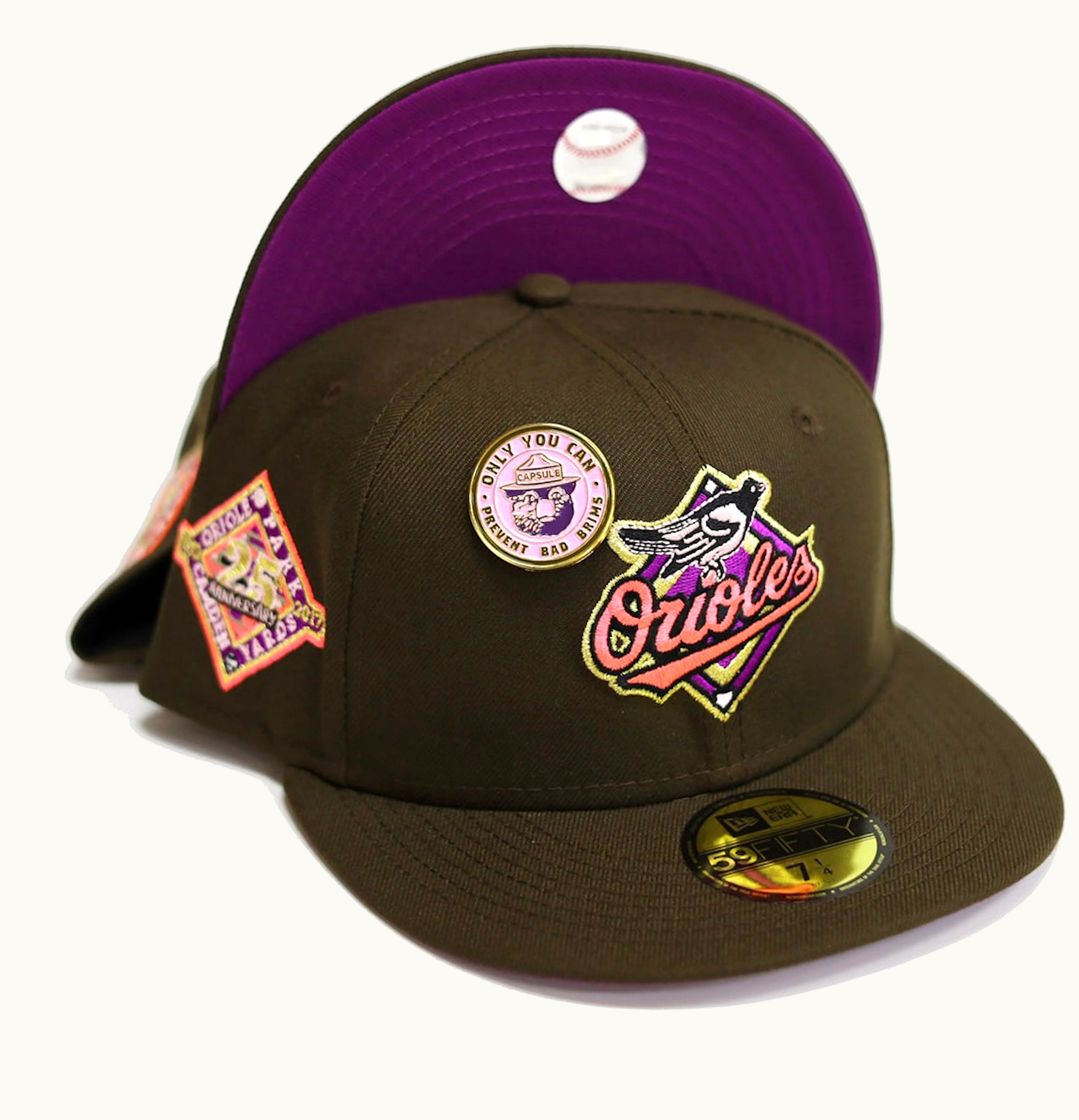 New Era Baltimore Orioles No Bad Brims 20 25th Anniversary Capsule Hats 59Fifty Fitted Hat Brown Purple | GLINT