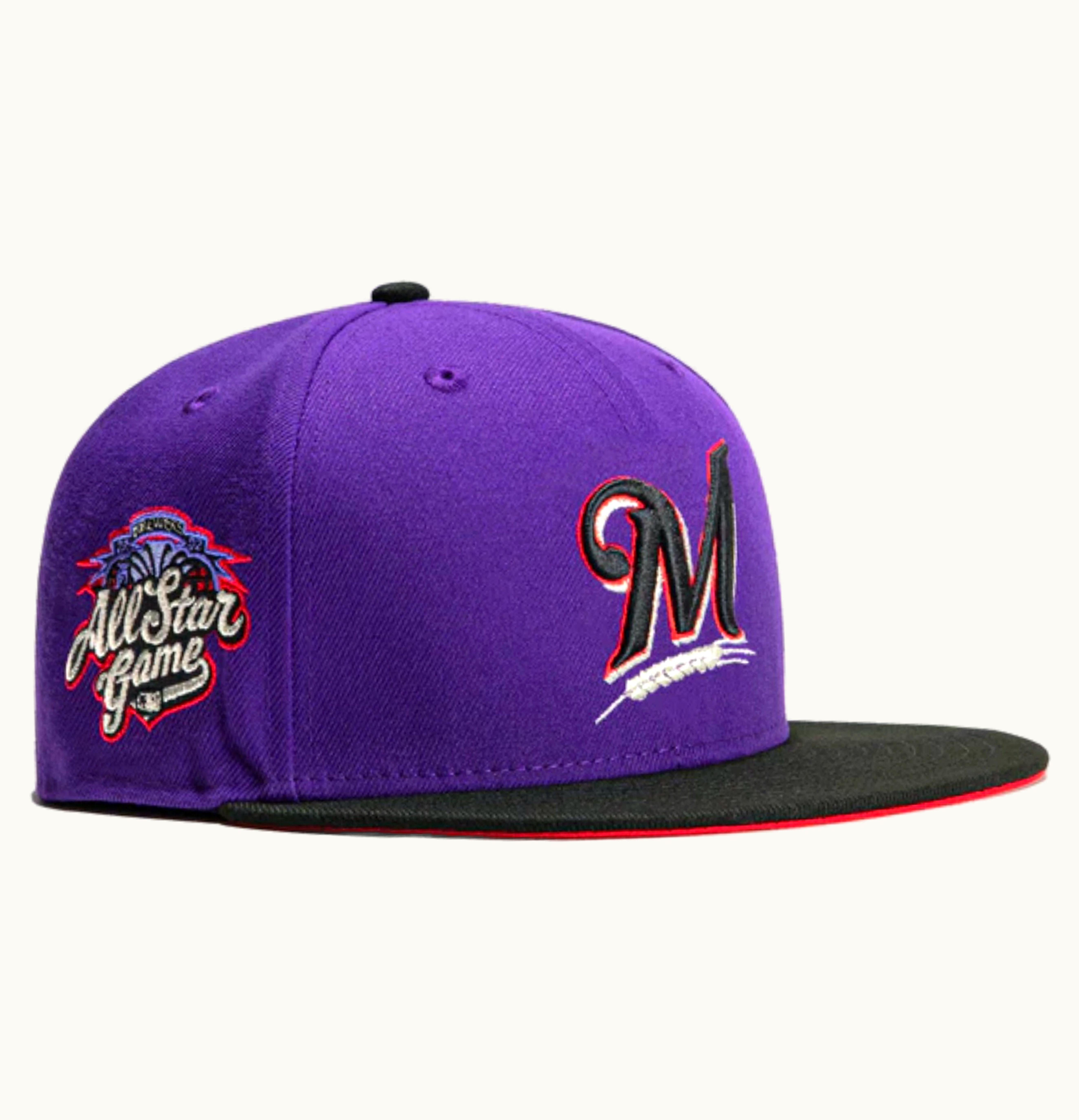 New Era Milwaukee Brewers T Dot 2002 All Star Game Patch Hat Club Exclusive 59Fifty Fitted Hat Purple Black | GLINT