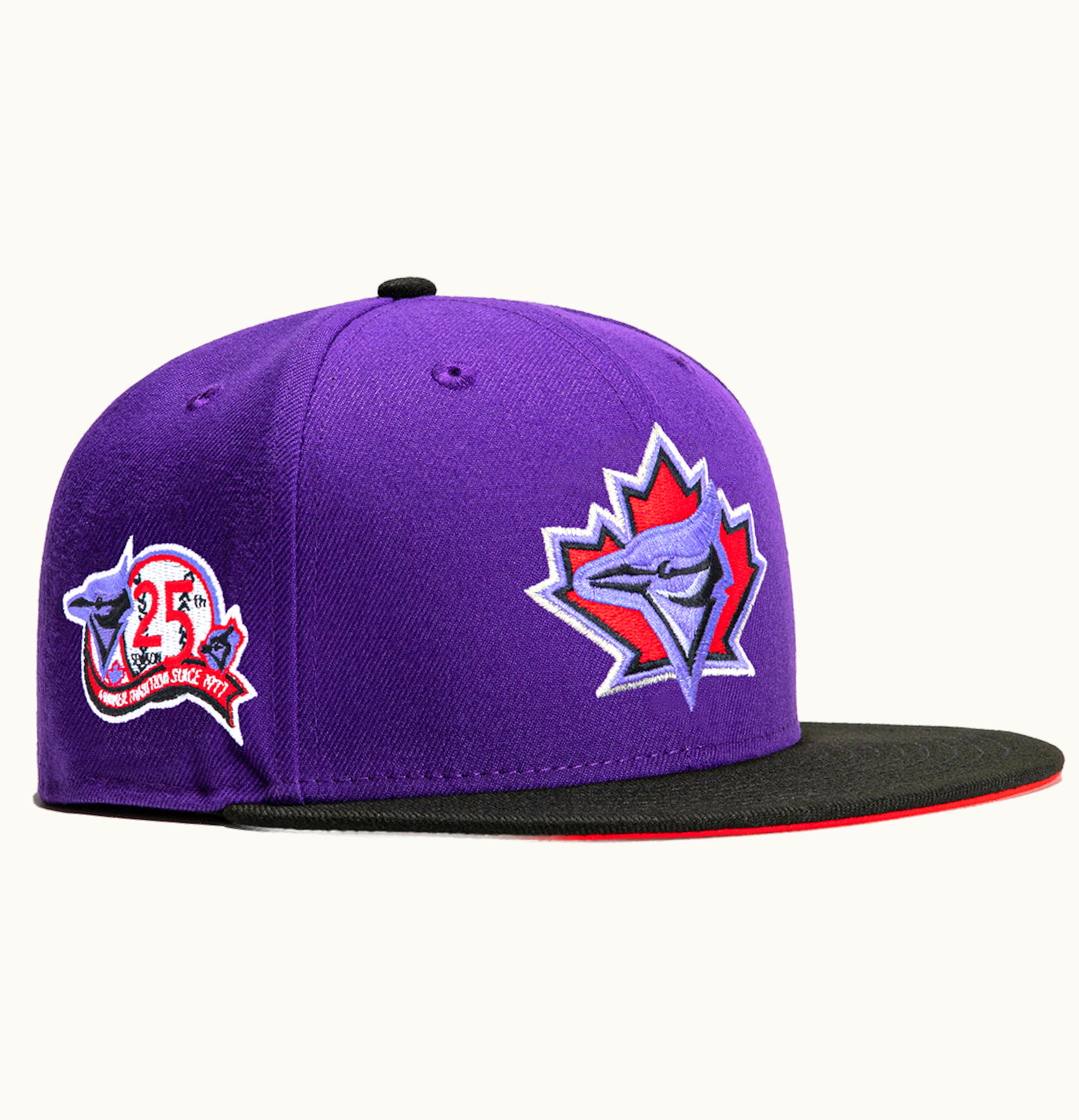 New Era Toronto Blue Jays T Dot 25th Anniversary Patch Hat Club Exclusive 59Fifty Fitted Hat Purple Black | GLINT