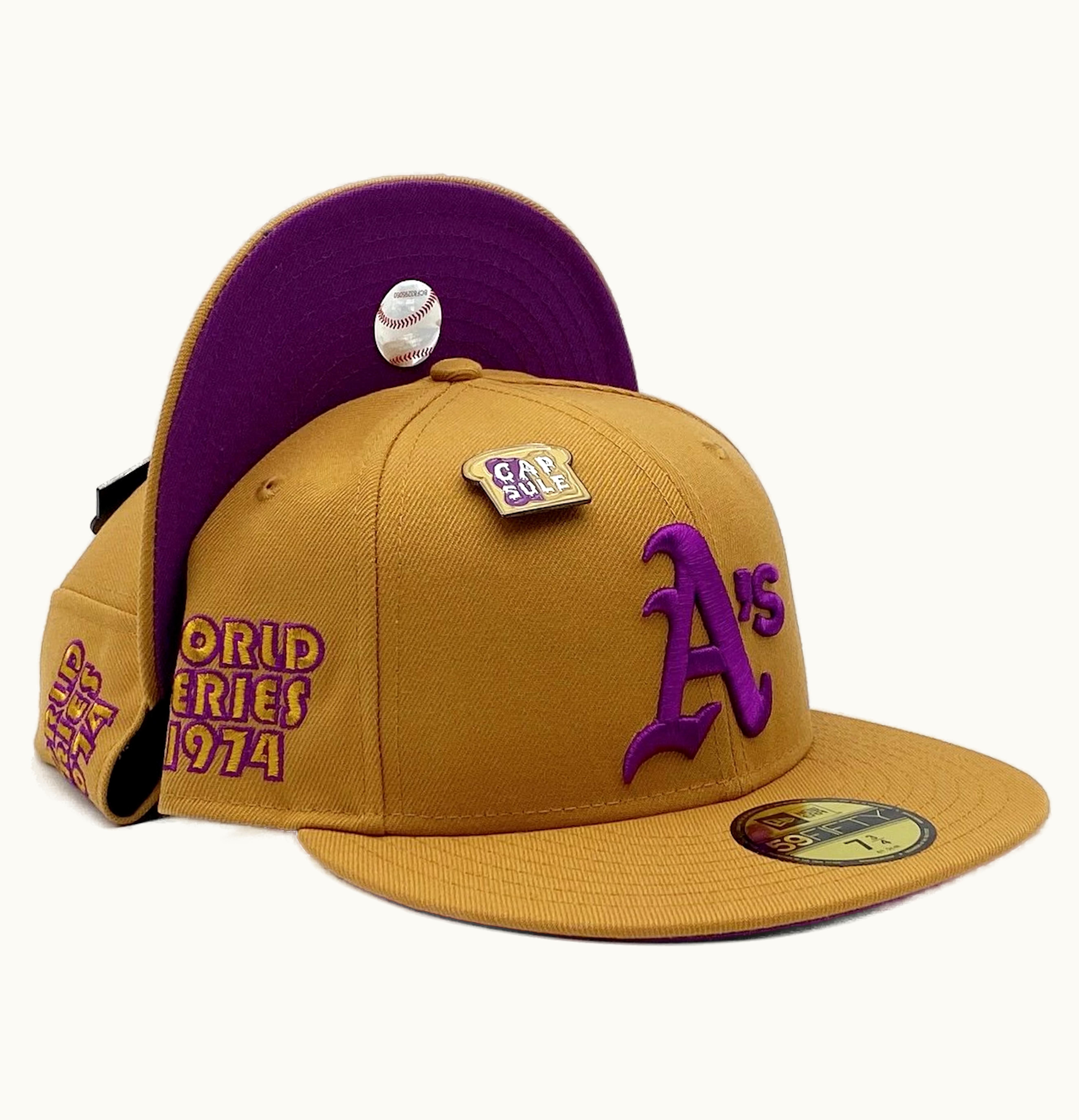 New Era Oakland Athletics Peanut Butter Jelly Collection 1974 World Series Capsule Hats Exclusive 59Fifty Fitted Hat Brown Purple | GLINT